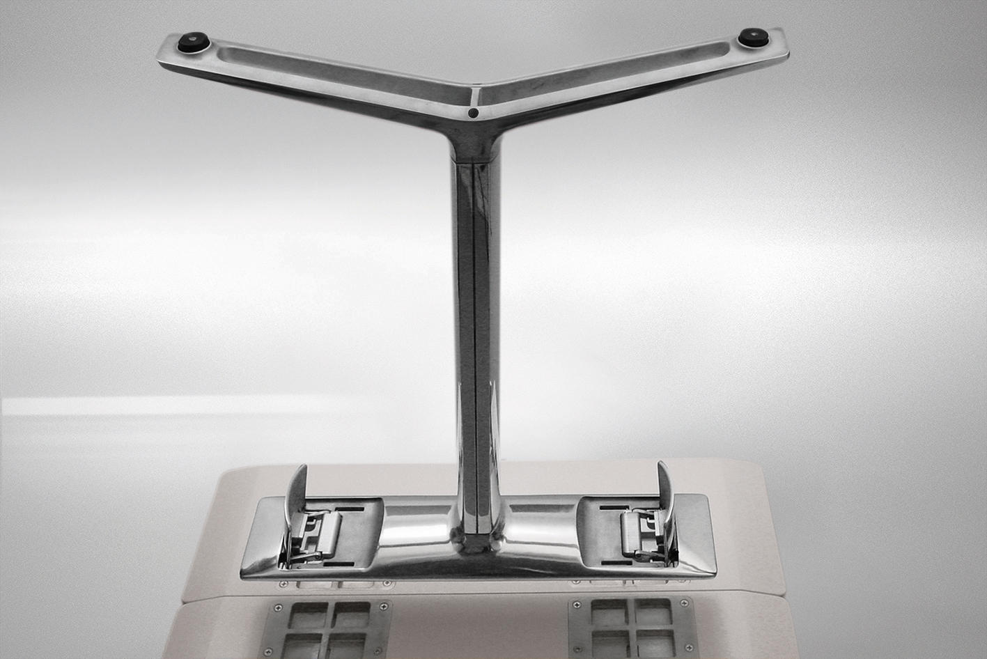 极致设计的抛光镀铬的铝合金桌脚,线条流畅,工艺精湛。