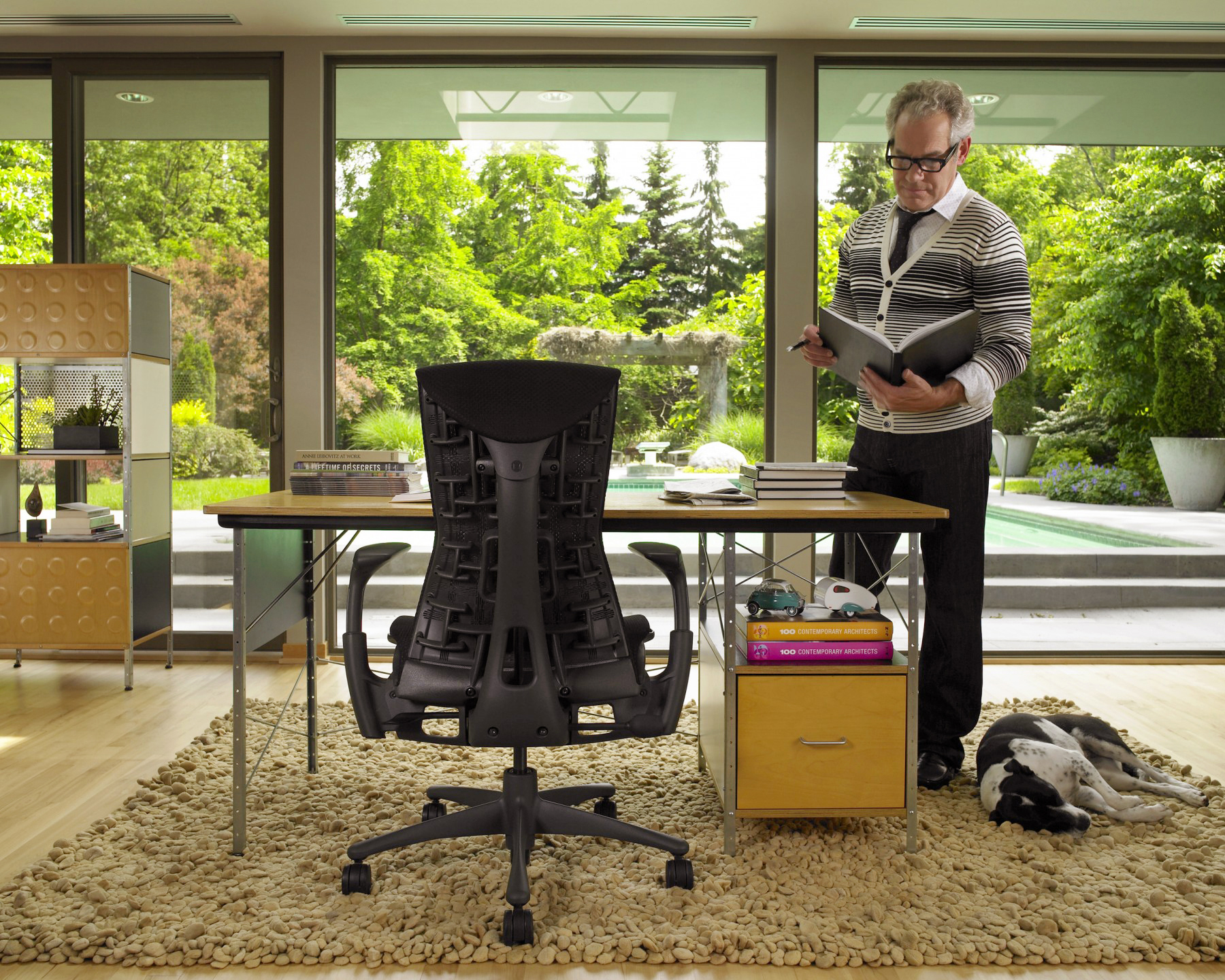 Embody的概念从一个业界未能克服的问题开始:人与科技之间缺少的实质和谐。我们身体的构造本来就是需要活动的。可现今人们长时间使用电子设备,手指以外的部位少有活动,而致使身体僵硬和疲惫。透过Embody,设计师Bill Stumpf和Jeff Weber着手解决这一问题。