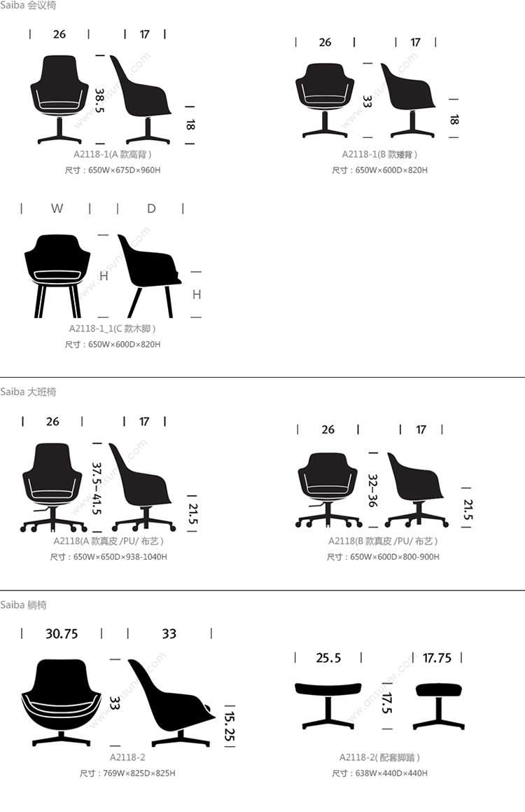 Saiba 餐椅 系列尺寸/示意图
