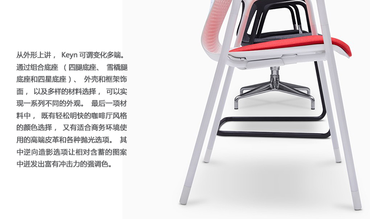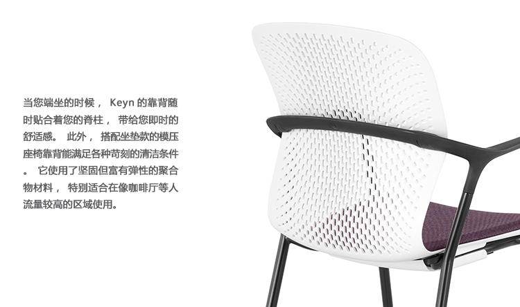Keyn座椅系列是一套会议和单椅的组合,能为协作式的空间提供响应式的运动机制和即时的舒适感。由伦敦设计团队forpeople设计的这款产品,使用了四个关键部件来创作此系列中的每个型号的产品,所以每款产品都能保持一样的视觉吸引力。Keyn的CradleFlex运动机制能响应姿势的变换,倾仰角度可达10度,能为您带来令人愉悦的舒适感