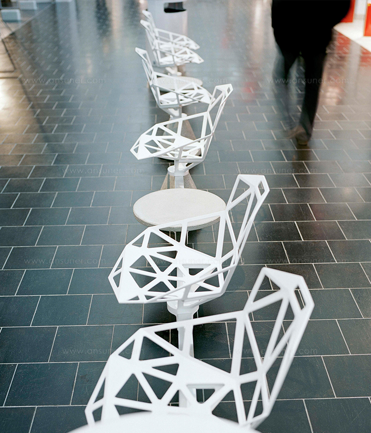 以抛光铝腿和压铸铝的座位,可用于室内或室外使用。 椅子一个叠加的2-pack提供同样的颜色。 系列也可以有一个具体的基底,四星级基底。
