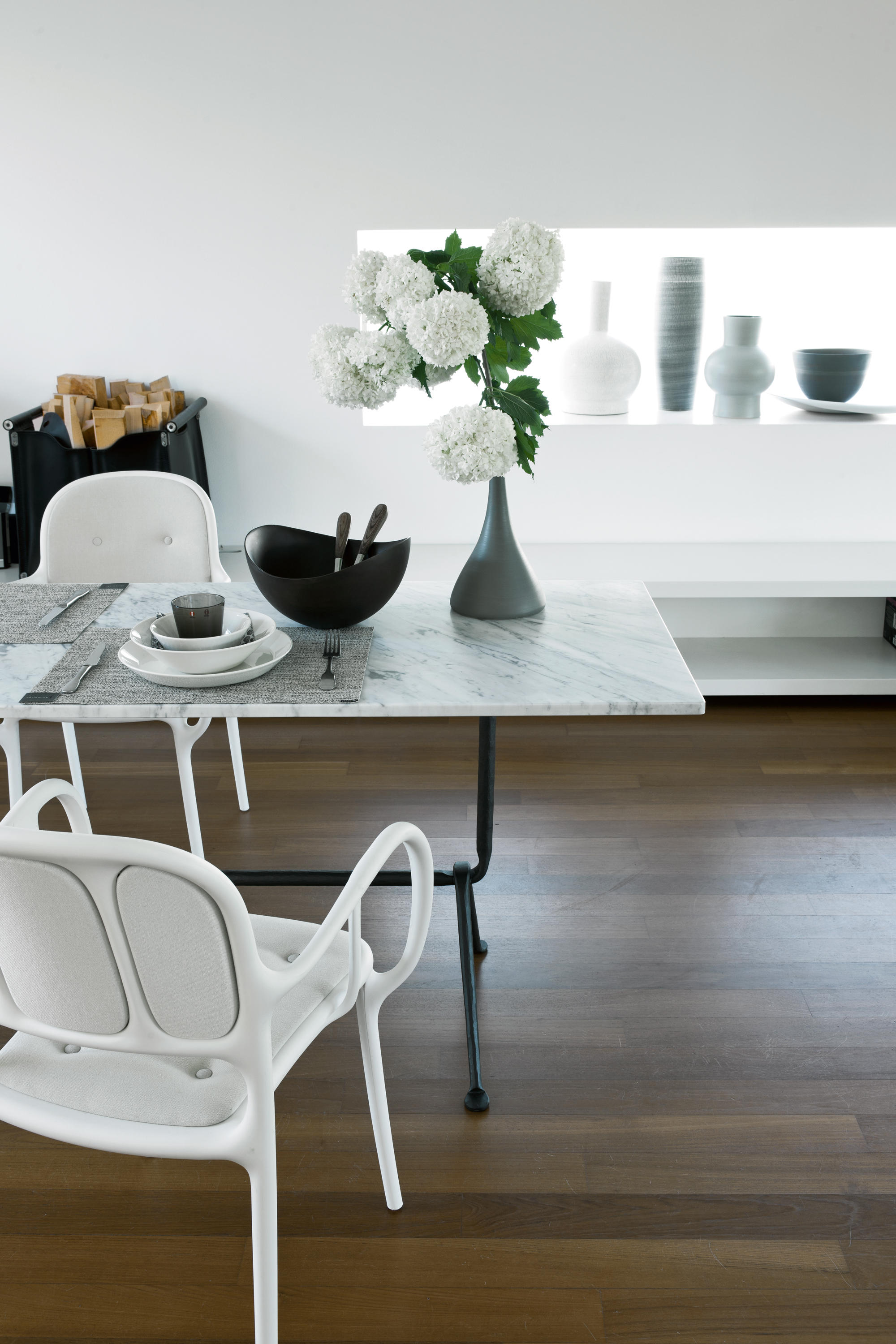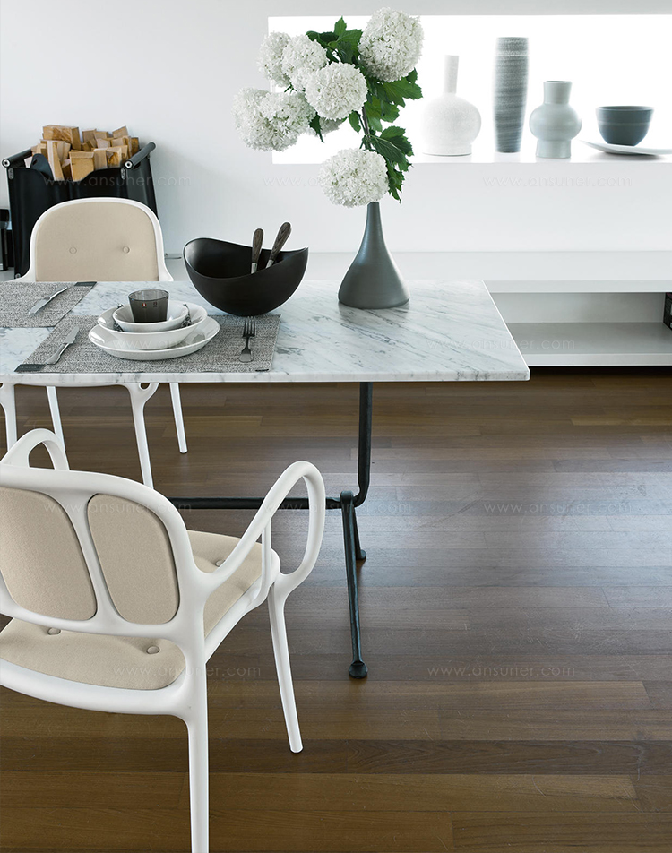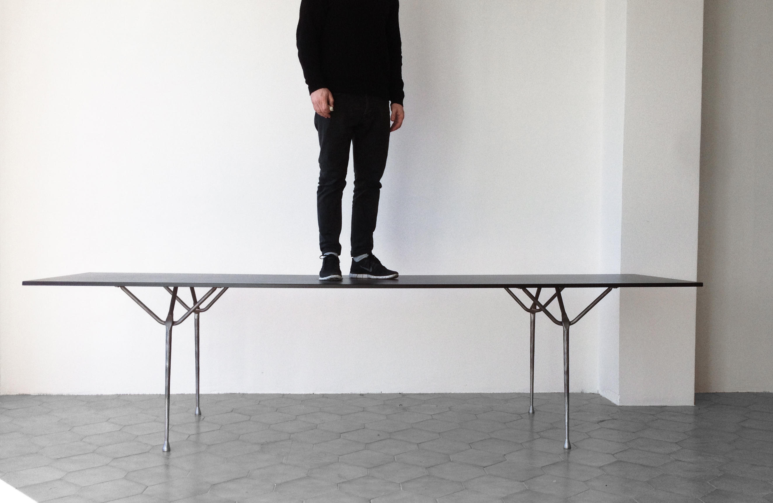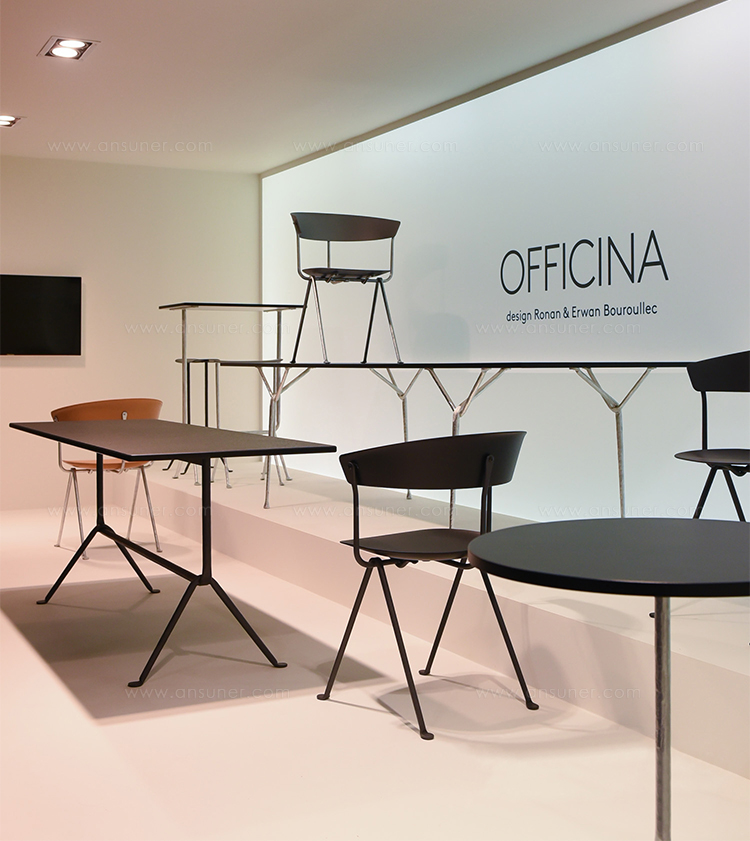 设计师罗南(Ronan)和Erwan Bouroullec用办公桌边设计了一种古老的锻造和锤击铁,用来制作各种形状。他们的目标是“利用这个古老的制造过程,给它一种新的视觉语言,”Erwan说。语言具有真实性和思想性。罗南指出:“通过对那些赋予它们形状的工具的随机、机械痕迹的反射,这些东西给工业计划带来了一股清新的气息。”