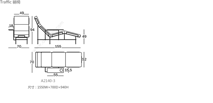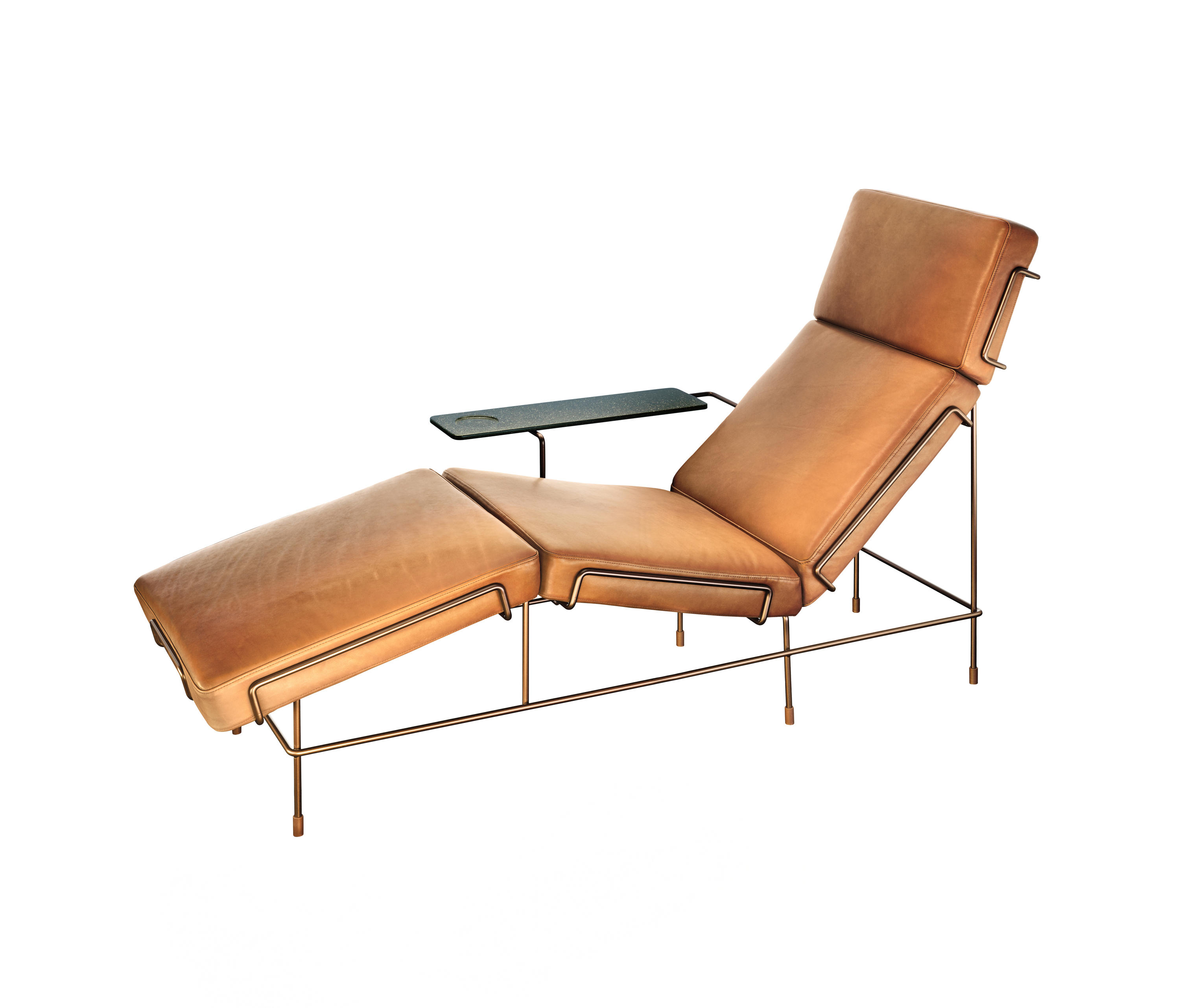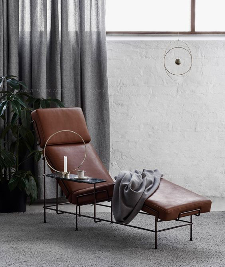 所有的产品均配有膨胀的聚氨酯泡沫垫,在织物或皮革的装潢和粉末涂层金属结构。交通躺椅提供皮革内饰或Kvadrat钢制三层面料室内装潢。每个躺椅都有一个丙烯酸石碑。