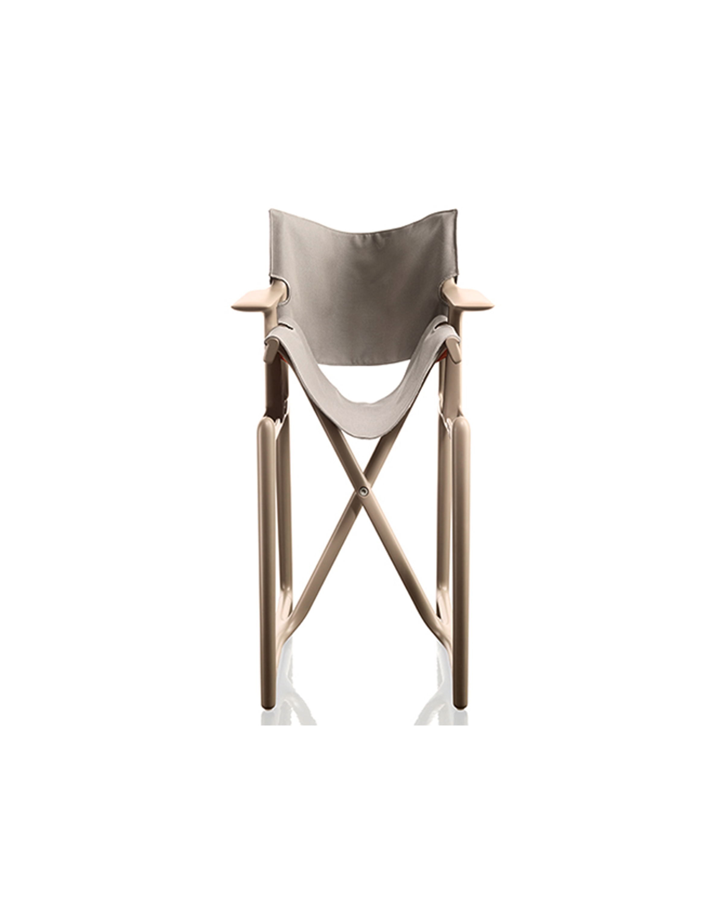 菲利普·斯塔克的团队花了三年的时间重新思考折叠主任的椅子。新技术和强大、美丽的材料提供了一个简单的椅子,在现实中是一个复杂的几何支持一套复杂的力量。结果,在玻璃增强聚丙烯中,座椅和椅背都有易于维护的织物或皮革,这远不止是一个更新,而是对Magis“世界上最好的导演椅子”的要求的回应。