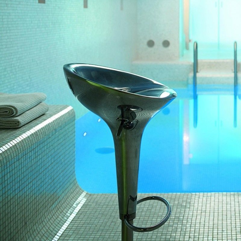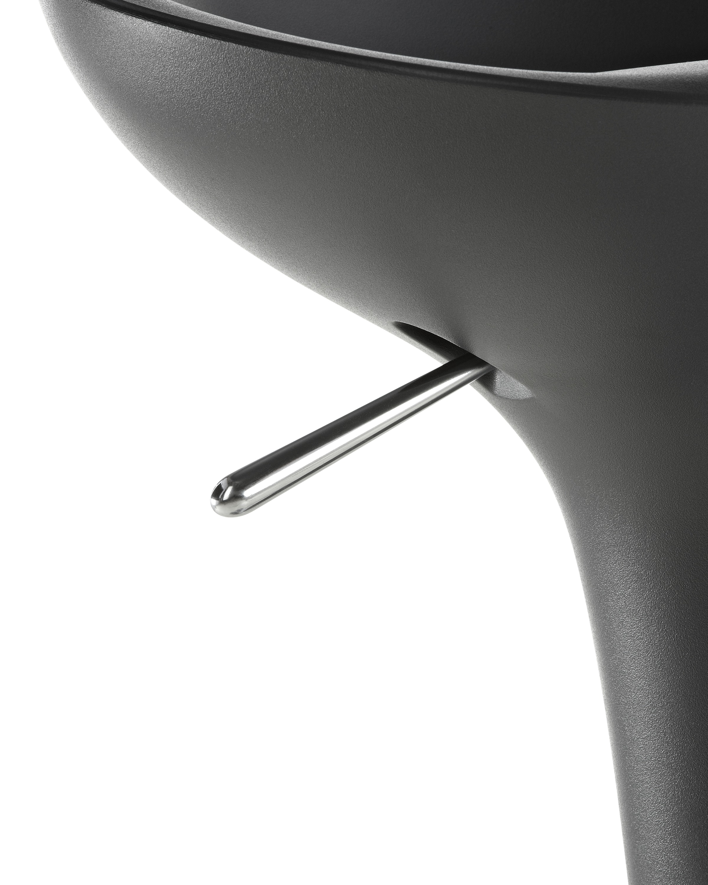 《星际迷航》(Star Trek)系列电视剧和电影《迷失太空》(Lost in Space)的片场都使用了这种未来感,最初的Bombo凳子改变了人们对凳子外观的看法。Stefano Giovannoni的华丽设计立即获得了评论界和商业上的成功。可提供一系列哑光色,座位旋转360度。