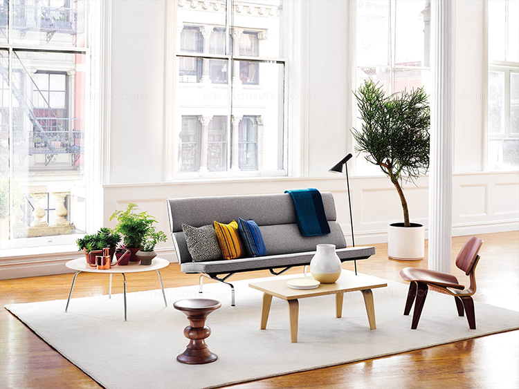 Eames紧凑型沙发既有传统笨重沙发的所有舒适性,又能轻松布置在无法使用大沙发的狭小空间内。以放在家庭的前厅、书房、工艺间或缝纫室,或是家庭办公室。可以放在行政套房、休息室和接待区。可以布置在小公寓中的起居室内,这款沙发可以提供足够的就坐位置,而且不会破坏房间比例搭配。