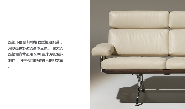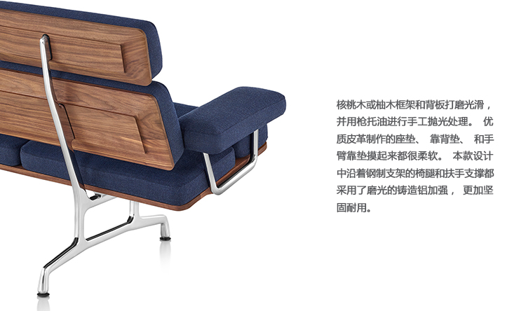 Eames沙发注重使用漂亮的材料和简约外形,完美诠释现代家具设计。倾斜轮廓和简洁表面体现出华丽核桃木或柚木、柔软皮革和抛光铝的和谐组合。现代家庭或办公室皆宜,是舒适地仰坐和放松的奢华选择。