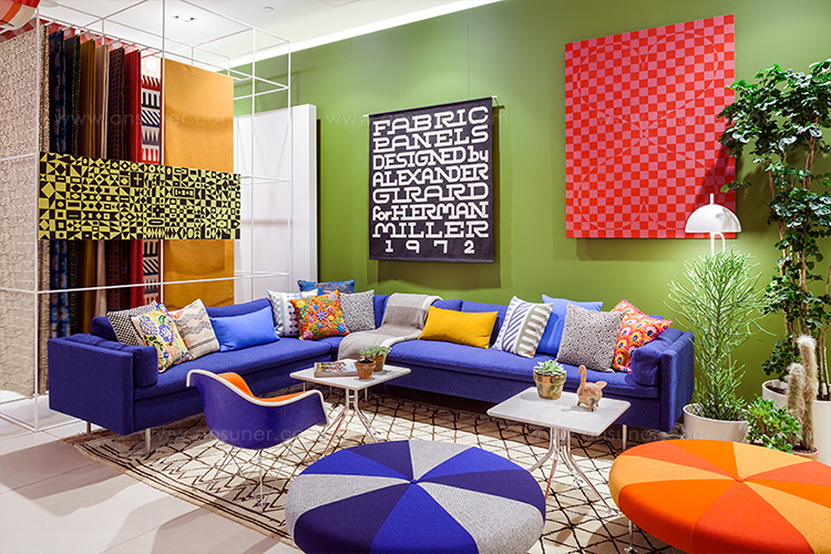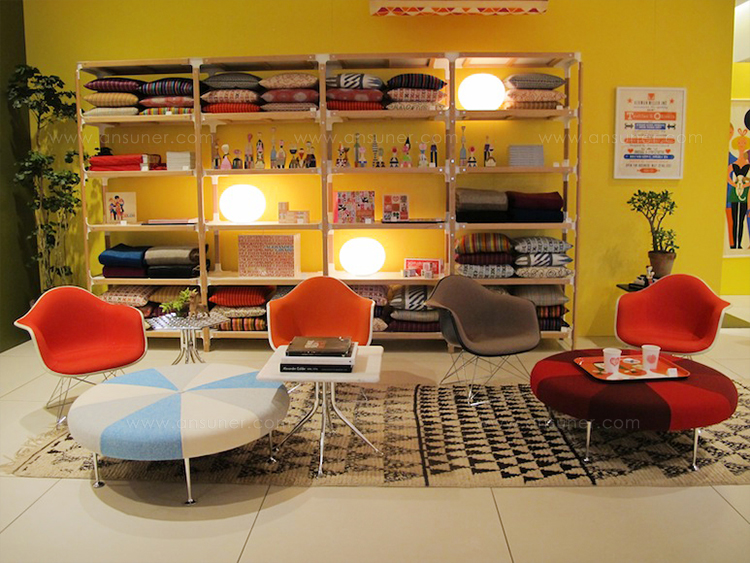 Girard彩色圆轮脚凳俏皮可爱、色彩艳丽,图案丰富,毫无疑问是Alexander Girard的作品。这段低矮的软垫休闲椅提供大胆靓丽的配色或醒目的条纹图案选择,可作为脚凳、咖啡桌、加座或者聊天椅。