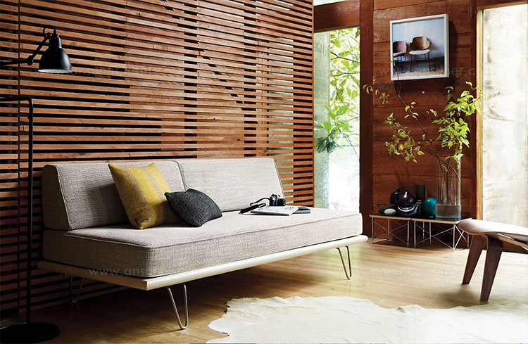 最初由乔治?纳尔逊(George Nelson)于1950年设计,重新发行时保留了原有的规格和精心制作的细节,比如木质平台的倾斜边缘和垫子的圆形焊缝管道,这是区别于仿制品的一个特征。不锈钢发夹腿或锥形木腿给它的经典纳尔逊触摸。缓冲增强了双密度泡沫,以更多的支持和耐久性,同时保持其轻质美学。随着住宅和公寓的面积不断缩小,纳尔逊牌(Nelson)躺椅等多功能家具为任何房间增添了一种实用而精致的感觉。