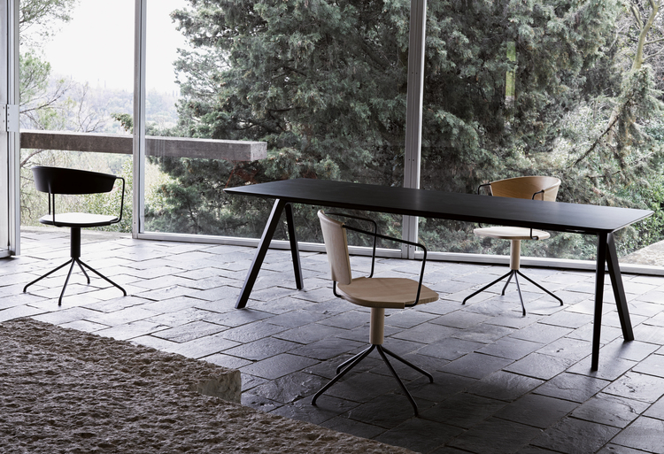 我们设想了一个木椅家庭与两个不同的靠背和一个(四星)旋转基地。