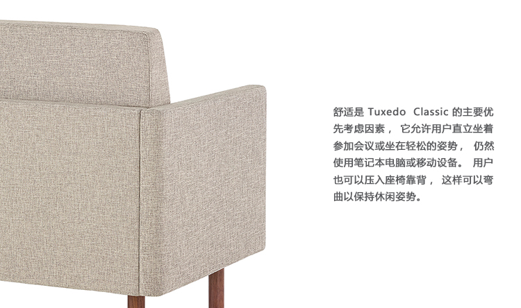 Tuxedo休闲座椅配置灵活,功能齐全,适合在各种空间安设,包括行政办公室、会议休闲区、大堂和接待区,此外还有客厅和家居场所。