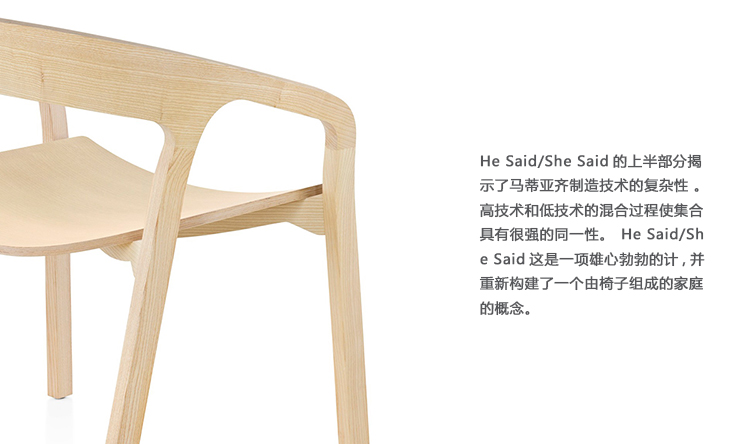 毫不奇怪,一个设计公司的木工说想出了一个椅子,展示了如此优美的木工。令人吃惊的是设计师Nitzan Cohen设想了一个新的动态与他建立他的他说她说椅子的细微差异。