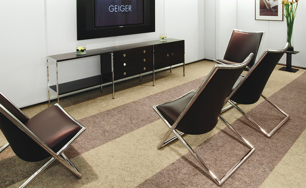 Ward Bennett从十九世纪中叶的吊床式贵妃躺椅汲取灵感,设计了Scissor座椅。最早的Scissor座椅出现于1964年。1968 年,Bennett改良了设计,选定了更加柔软的长方形椅面。Scissor座椅备有多种金属饰面;几乎也可以用所有皮革或织面装饰。