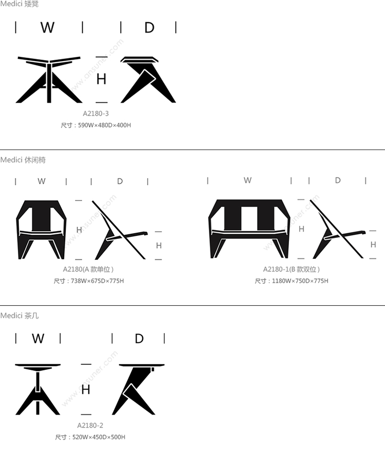 创意家具 - 坐具|吧椅/凳子|办公家具|设计师家具|美第奇矮凳