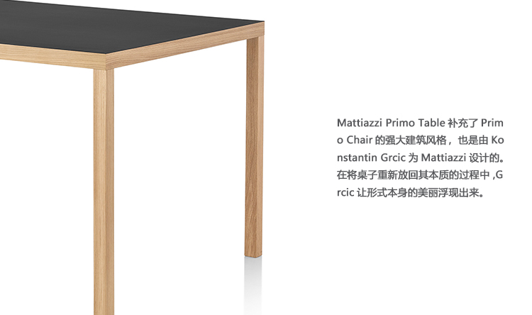 Mattiazzi Primo Table补充了Primo Chair的强大建筑风格,也是由Konstantin Grcic为Mattiazzi设计的。 在将桌子重新放回其本质的过程中,Grcic让形式本身的美丽浮现出来。
