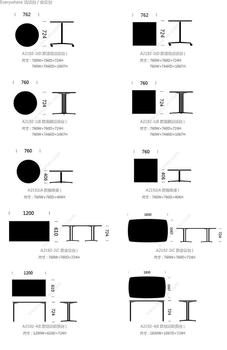 Everywhere 系列尺寸/示意图