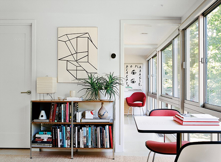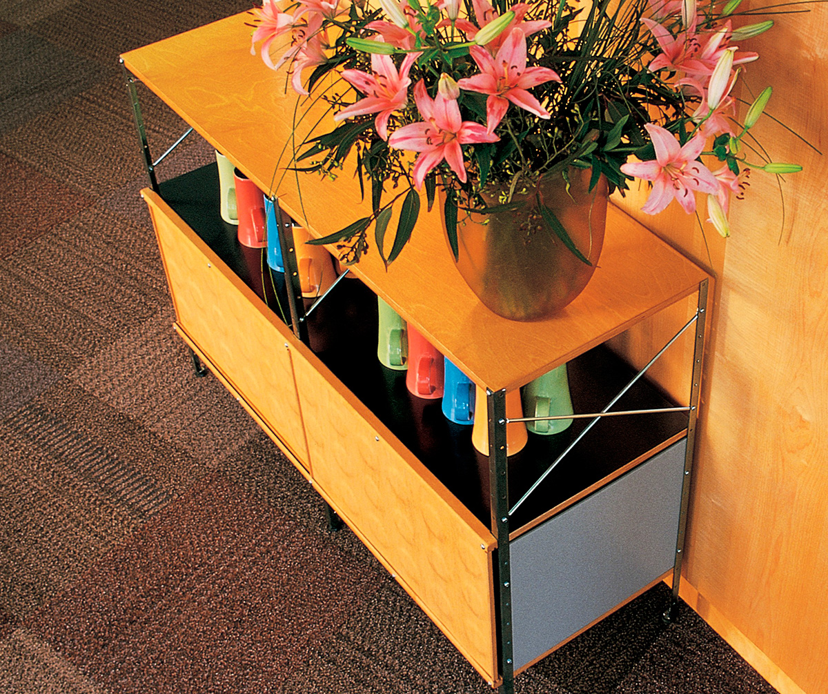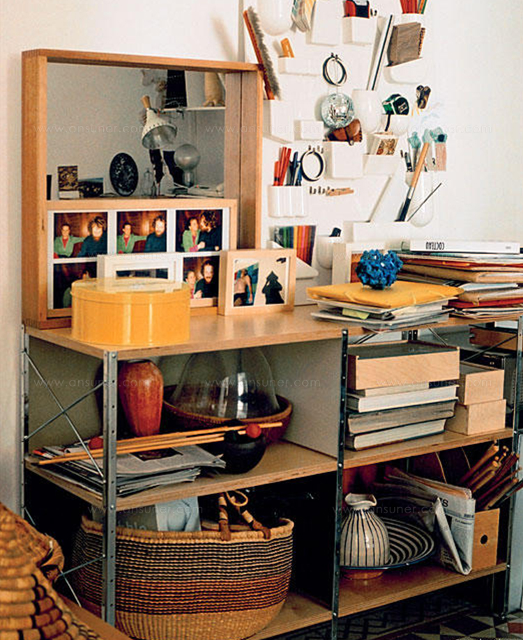 他们在底特律艺术学院为1949年的一次展览所做的工作,Eames Desk Units和Storage Units展示了“机器美学”和日本风格对当时的Eameses有重要影响。早在“模块化”和“高科技”进入语言之前,Charles和Ray Eames就以多种方式将标准化部分结合起来,创造出适合家庭和办公室各种用途的实用家具。