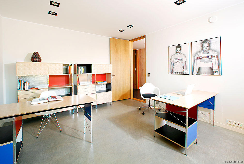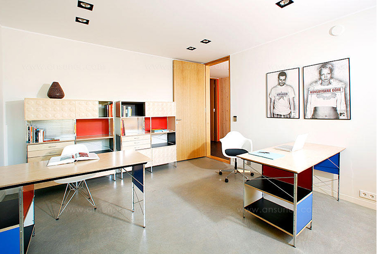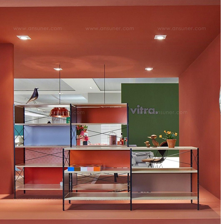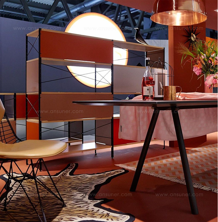 他们在底特律艺术学院为1949年的一次展览所做的工作,Eames Desk Units和Storage Units展示了“机器美学”和日本风格对当时的Eameses有重要影响。早在“模块化”和“高科技”进入语言之前,Charles和Ray Eames就以多种方式将标准化部分结合起来,创造出适合家庭和办公室各种用途的实用家具。