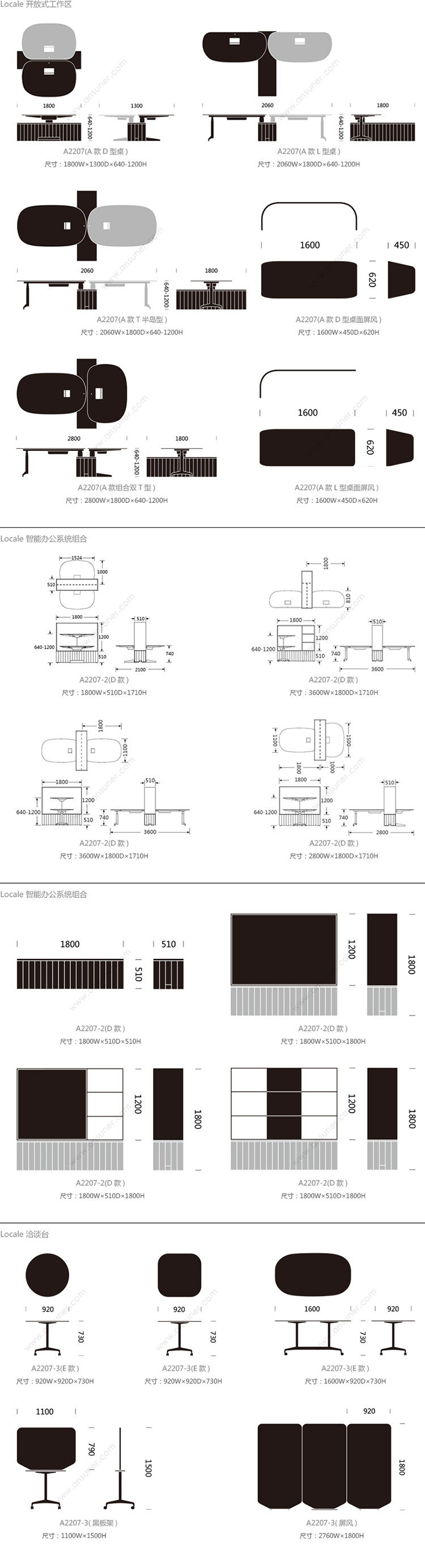 办公台|升降台|办公家具|设计师家具|Locale 开放式工作区
