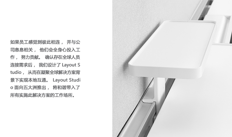 任何人都可以轻松地在Layout Studio中找到一个家庭基地。 它集成了个性化的工作工具和存储,可以在坐姿和站立高度的办公室景观中采用多种形式。 Layout Studio的选择也适用于组织。 它允许它们根据需要向上或向下扩展,以适应全局系统中的本地首选项。