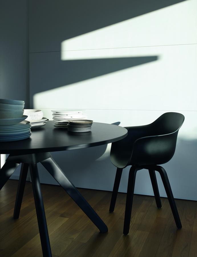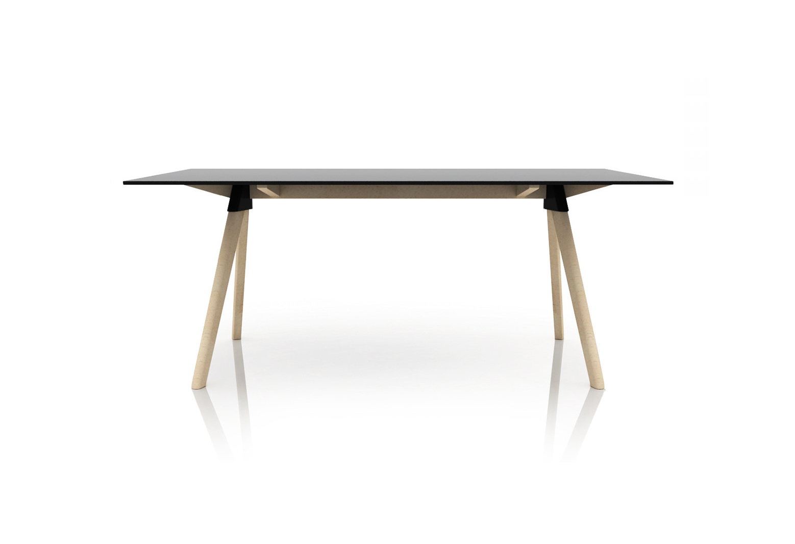 与系列中的所有产品一样,Butch table的特色是一个实心山毛榉框架和注塑聚丙烯接头,以及一个矩形的HPL(0.5英寸厚)顶部,有两种尺寸和两种颜色(白色和黑色)可供选择。黑色的HPL上衣可以防指纹。