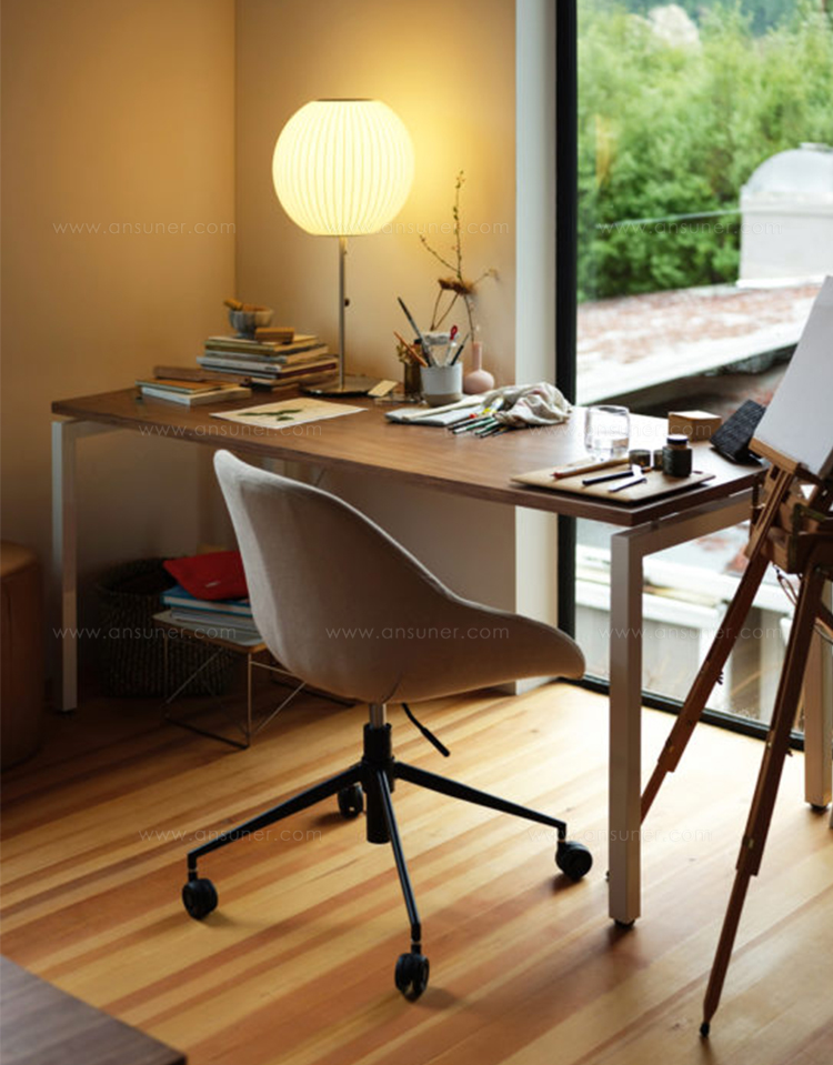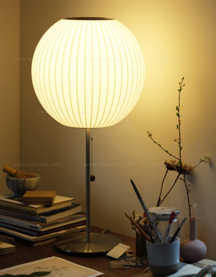 Nelson Ball莲花台灯采用轻质钢框架制成,完美圆润的球形底座设置在钢制底座上,有或没有胡桃木盖,并配有86英寸插入式线。 带有实心胡桃木末端的拉链提供了打开和关闭灯泡的便捷方式。 1952年,尼尔森对一套瑞典吊灯印象深刻,这些吊灯采用丝绸覆盖物制成。 他们高昂的价格促使尼尔森以一种让他们更实惠的方式设计自己的价格。 结果是一系列具有元素,球形形状的灯,如圆形苹果,细长雪茄和形状梨等。