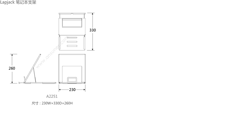 Lapjack 笔记本支架 系列尺寸/示意图
