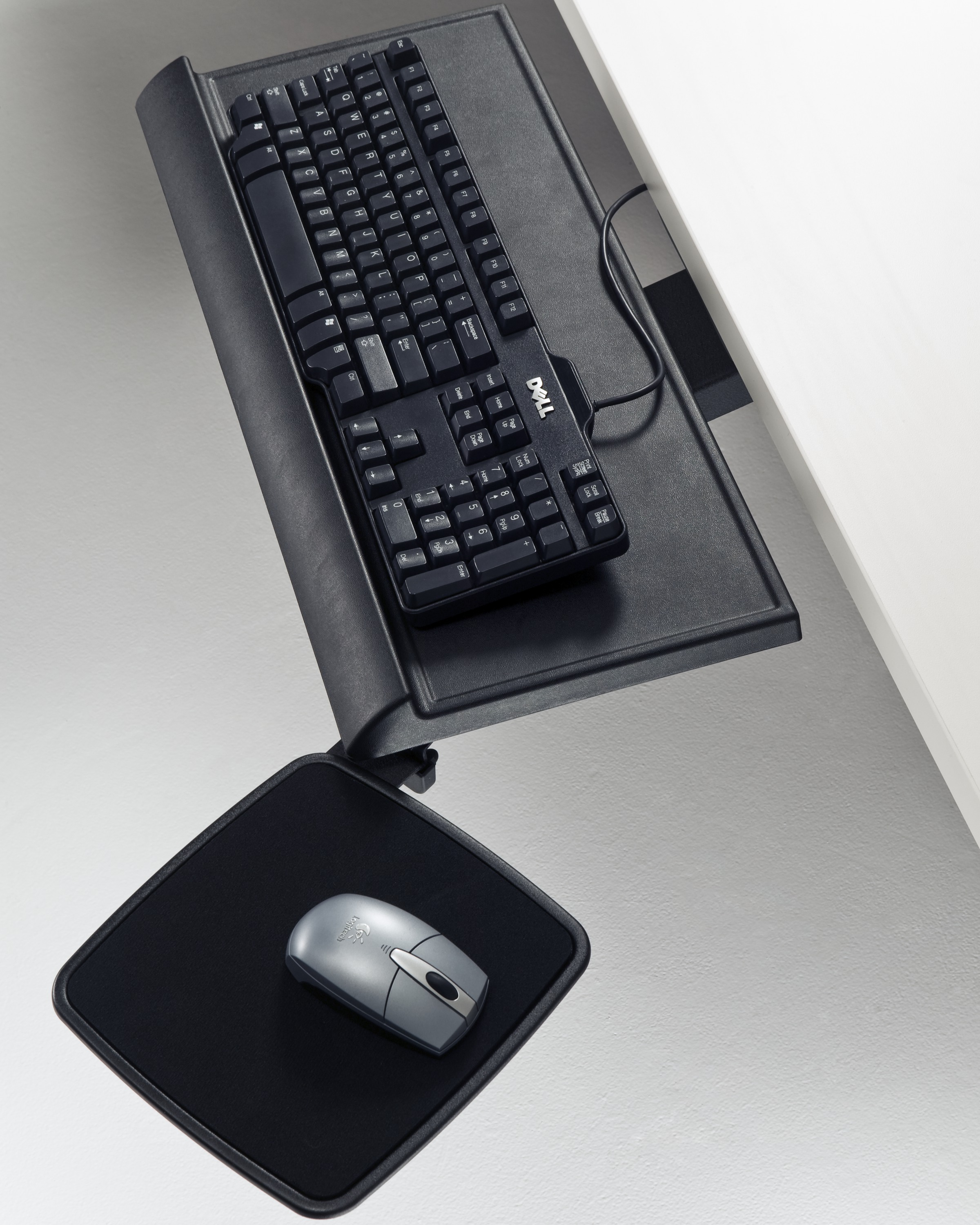 为了像你一样努力工作,我们的键盘支持连接到工作表面的底部,使你的键盘表面在适和你身体定位的高度和角度。高度和倾斜的调整范围很广,确保了所有人和家具的健康位置。当你需要打字的时候,机械装置就会伸出来,当你不使用时,机械装置就在工作表面下整齐的储存