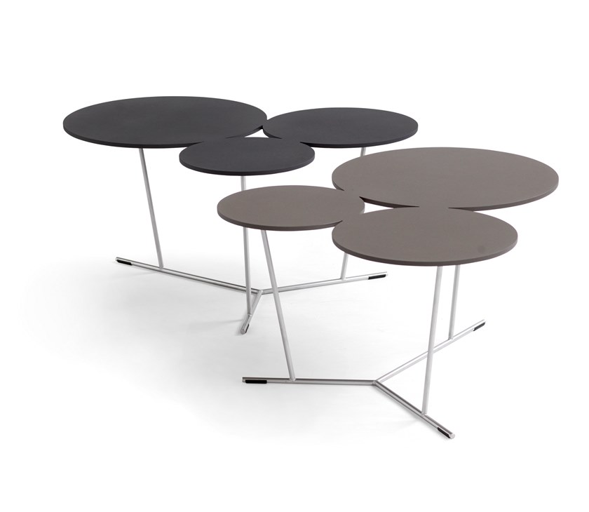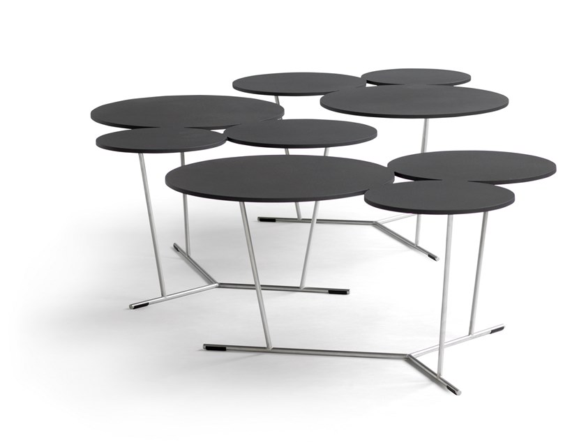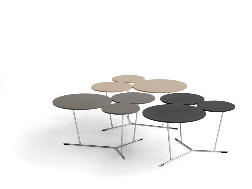 气泡的俏皮形状打破了严格和方形的环境。具有三种不同大小的程式化气泡的装饰性图形桌子。如果您只想要更多,可以对其进行调整。它们会渗入房间。哑光烤漆桌面采用激光切割铝制成,并由不锈钢结构支撑。有多种颜色可供选择,从黑白到沙子,赤陶,无烟煤和粘土。可在室内和室外使用。