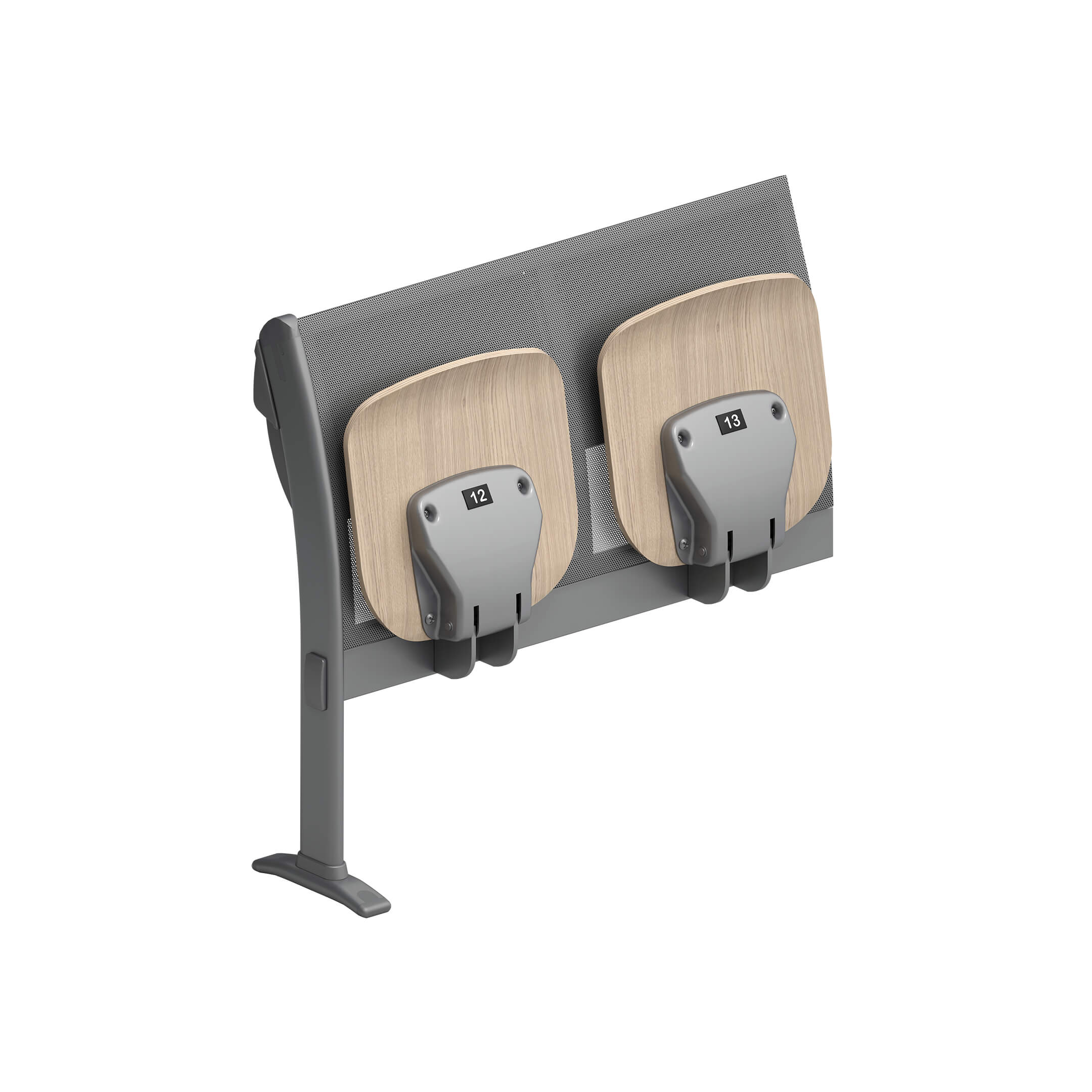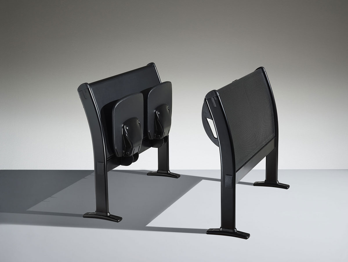 多功能的桌子和座椅系统,可放置两三个位置,直排模块化,非常适合大学,培训室或教学。特别注意结构的细节以及机芯的合理化,以确保较高的技术性能和抵抗力。该结构包括一个钢制地板支架,一个椭圆形的管脚以及一个由矩形管制成的水平连接梁,一个可用胶合板或模压板制成的连续靠背板。工作台由带ABS边缘的双层托盘组成,有固定版本,可折叠或带有防恐慌系统可伸缩。
