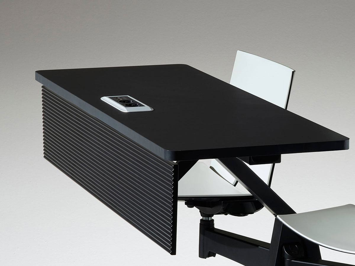 ST12-13家具是一件式系统,由两个可移动座椅和带压铸铝且喷漆的枢转臂组成。有2的倍数可用,可以定位在半圆或直行中。ST12-13家具系统可轻松放置在平坦的地板或架子上。 座椅支撑臂可提供64度的运动以及360度的旋转式座椅,并提供极大的运动自由度。通过在不同的行上,这提供了在同一个表上工作的可能性。 带ABS边缘的双层压板工作台面经过协调或电镀,深度为40cm。我们可以将电气化系统与在工作台或支撑结构上可触及的插头集成在一起。