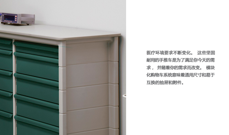 医疗环境要求不断变化。这些坚固耐用的手推车是为了满足你今天的需求,并随着你的需求而改变。模块化购物车系统意味着通用尺寸和易于互换的抽屉和附件。