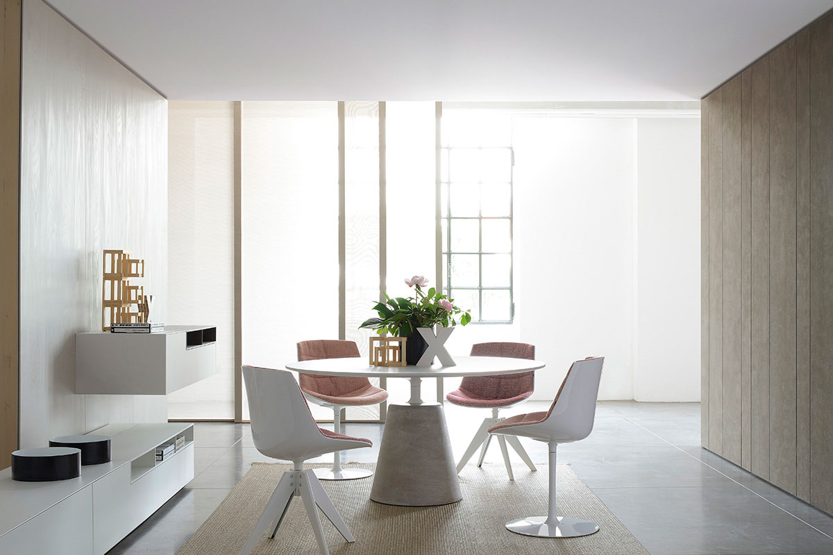 Rock Table桌子的优雅轮廓增加了新的饰面:顶部为天然水泥制底纹的漂白漂白橡木,顶部为无烟煤灰水泥的制纹无烟煤橡木。 ROCK TABLE 天然和工业材料的混合物,混合后可制成具有平滑设计的新产品。一个精致的固体物体,轻巧而稳定,既激进又感官。 Rock Table是适用于家庭和合同环境的桌子的集合,其底座为天然或无烟煤中的UHPFRC水泥。两种类型的底座:窄于80和100厘米的大桌面,或宽于120和140厘米的大桌面。H110或73厘米(用于窄底座的桌子),H 73厘米(或71.5英寸,烟熏玻璃顶部)用于宽底座的桌子。