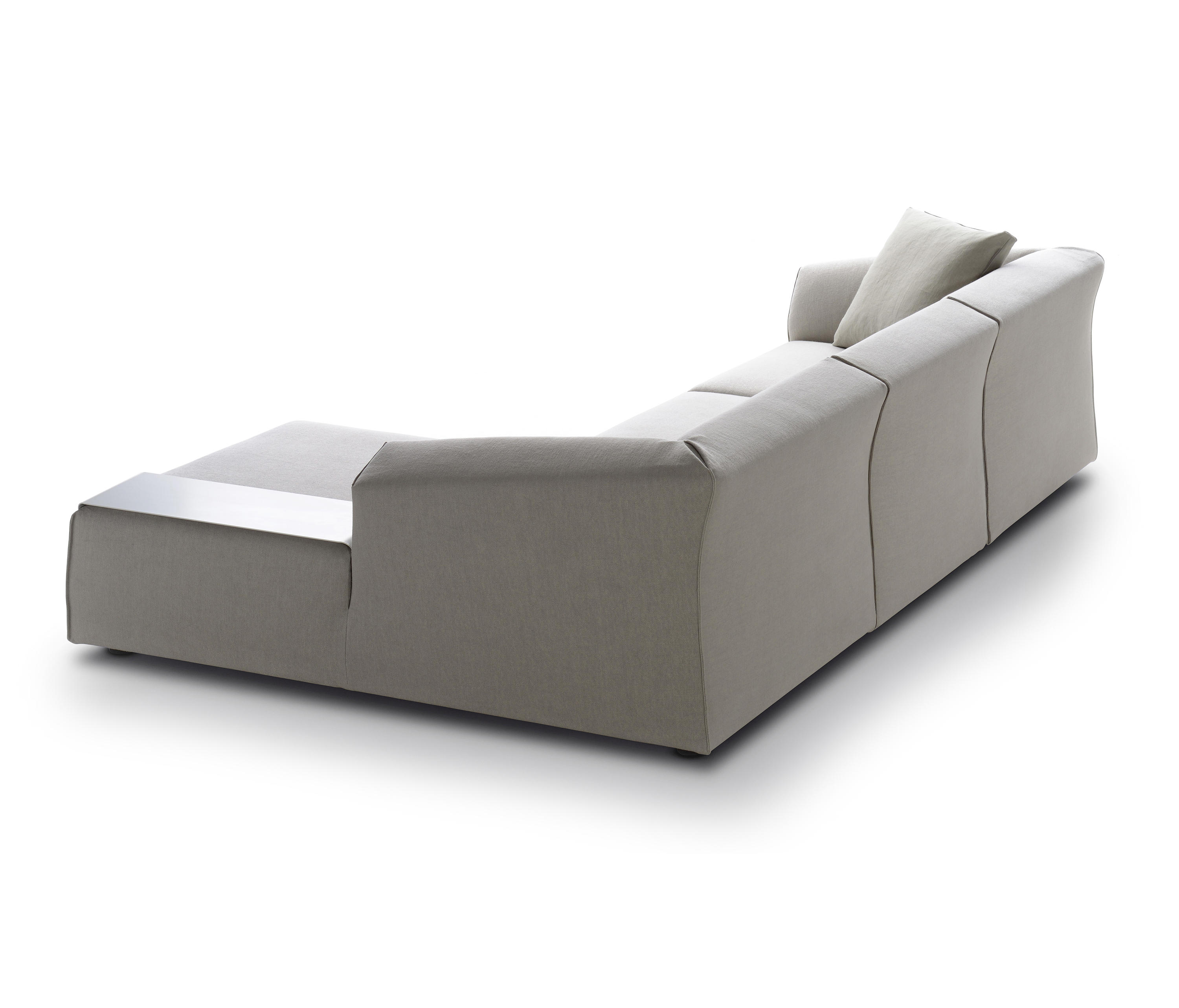 Thea是新的软垫系统,源自女性对形状的解释以及明显对立的指导原则之间的平衡:舒适,舒适-整洁,动态-严格,轻巧-高度紧凑。Thea的折衷主义在于对不同观点的和谐研究:正面正交,侧面倾斜和背面凹入。沙发具有高度的原创性和动感,只是因为它融合了所有这些语言:它是一种投射和形状的游戏,赋予其设计独特且可识别的标志。涂层增强了女人味:就像包裹包裹和垂褶的连衣裙一样,褶皱完美地粘在模块的形状上。通过使用不同的接缝,对剪裁细节以及意大利剪裁的要求给予特别关注。在三种不同的颜色(白色,鸽子灰色和无烟煤灰色)中应用偏斜接缝和对比度磨边,以定义角度,曲线和形状。五个功能性配件完善了产品系列:头枕,靠垫,方形垫子,被子和铝制托盘。