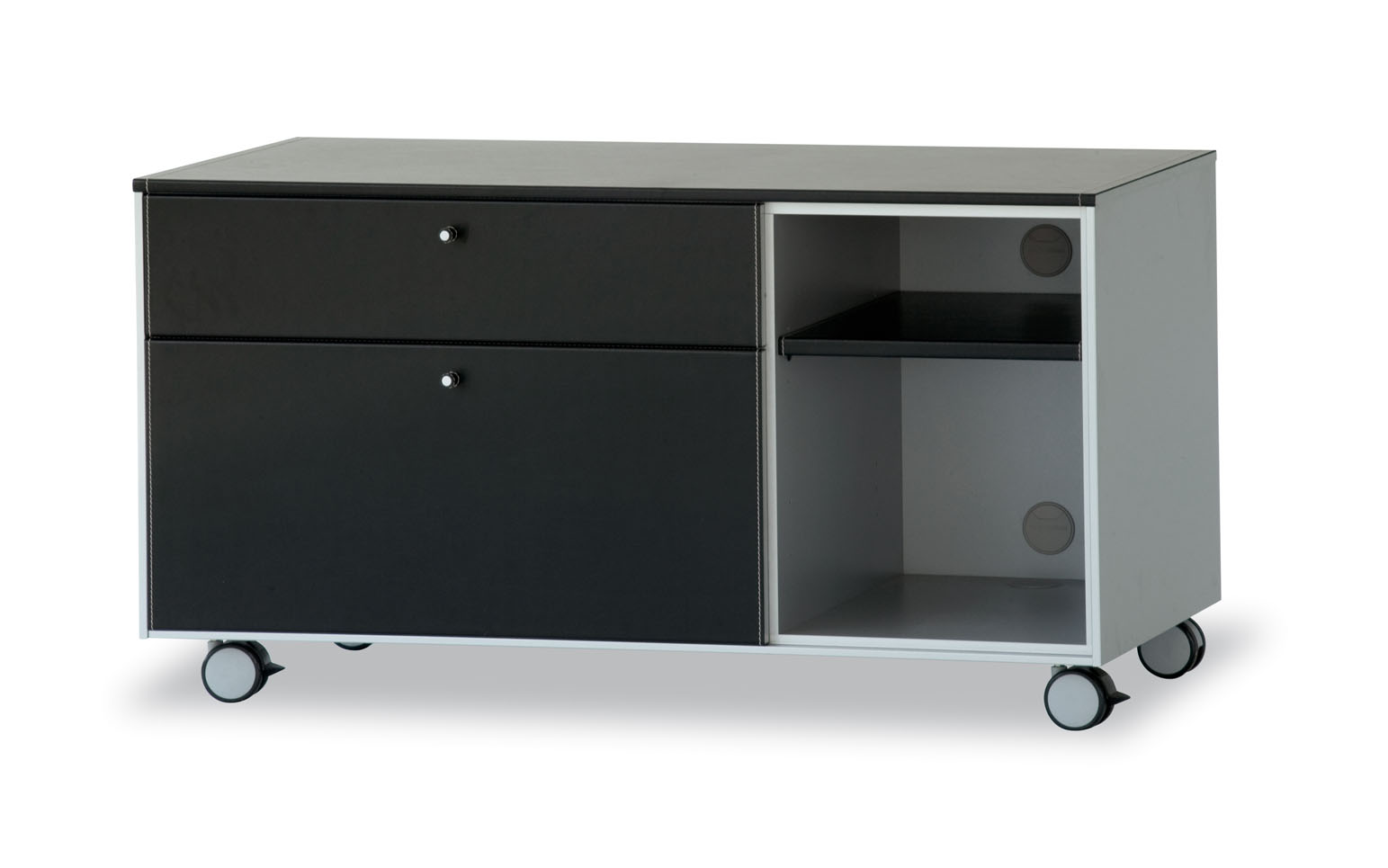 带有落地式桌面Corium 侧柜边柜/文件柜通过单一,简单的操作就可以将精致而温馨的区域转变为工作区,同时仍保持较高的美感。