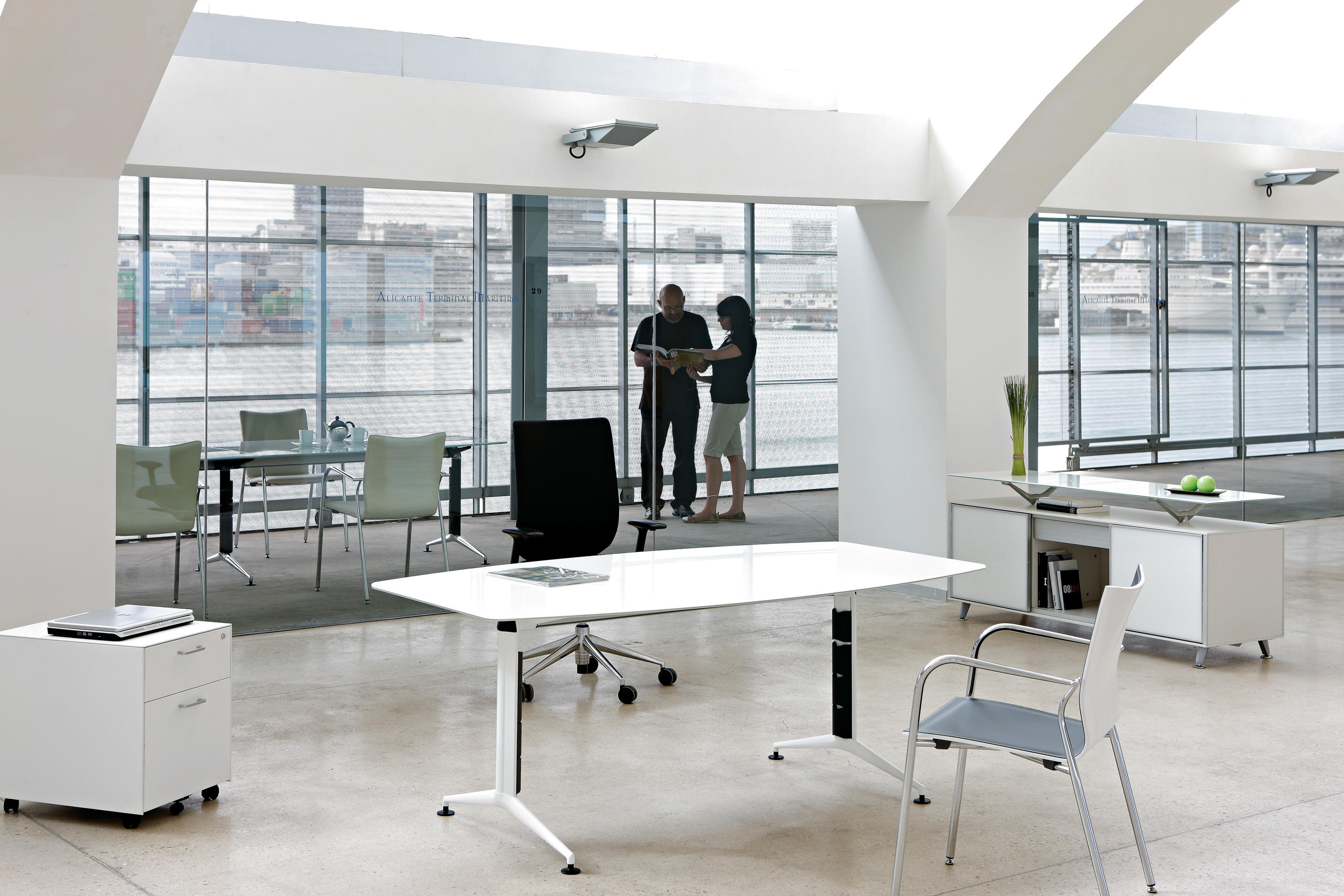 作为一个有活力的办公空间,Trama有一条钢制的圆柱形桌梁,用来稳固整个结构。它有一版本是一个带有轮子的移动办公桌,使它成为一个大胆而实用的部件。