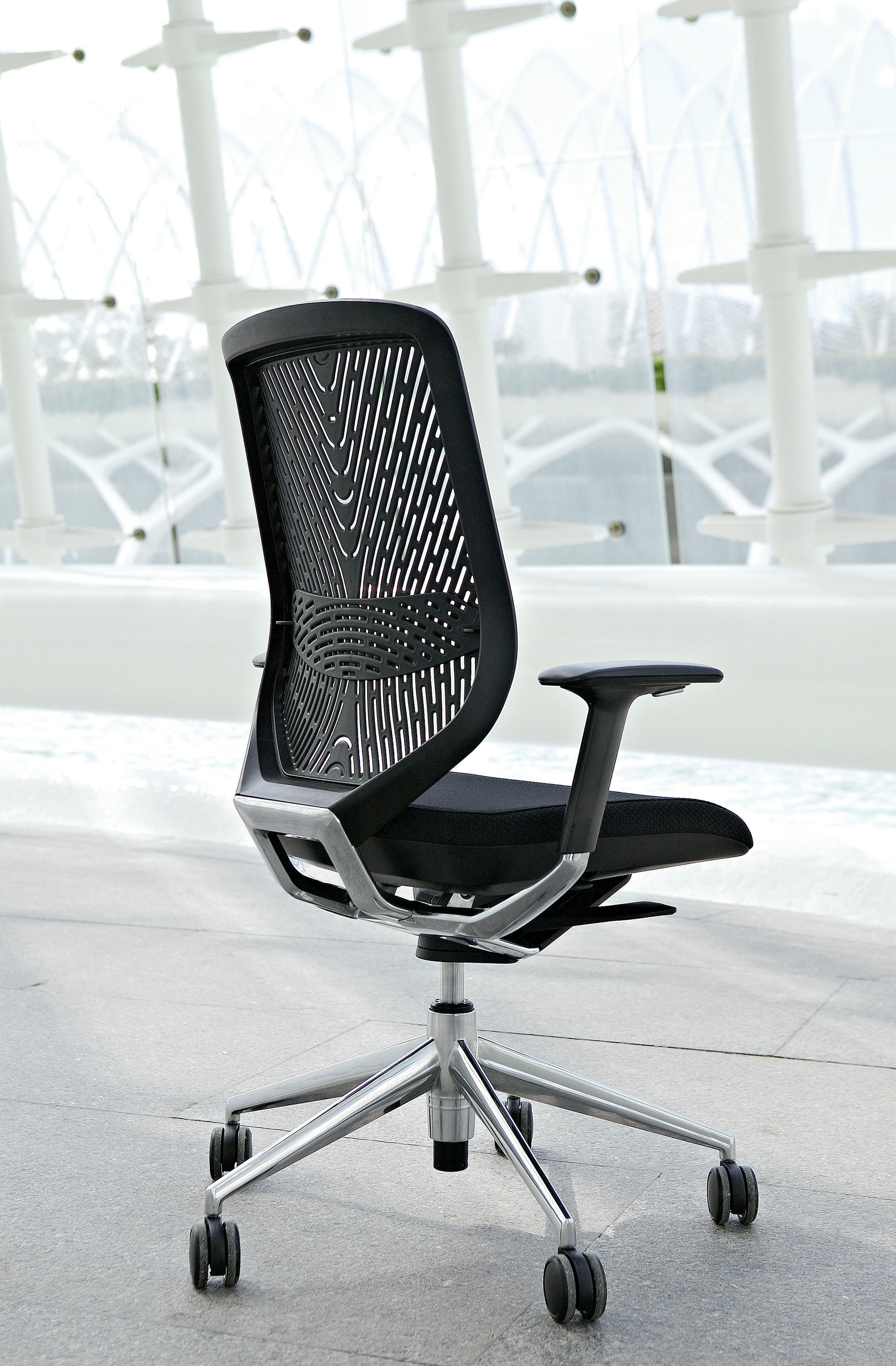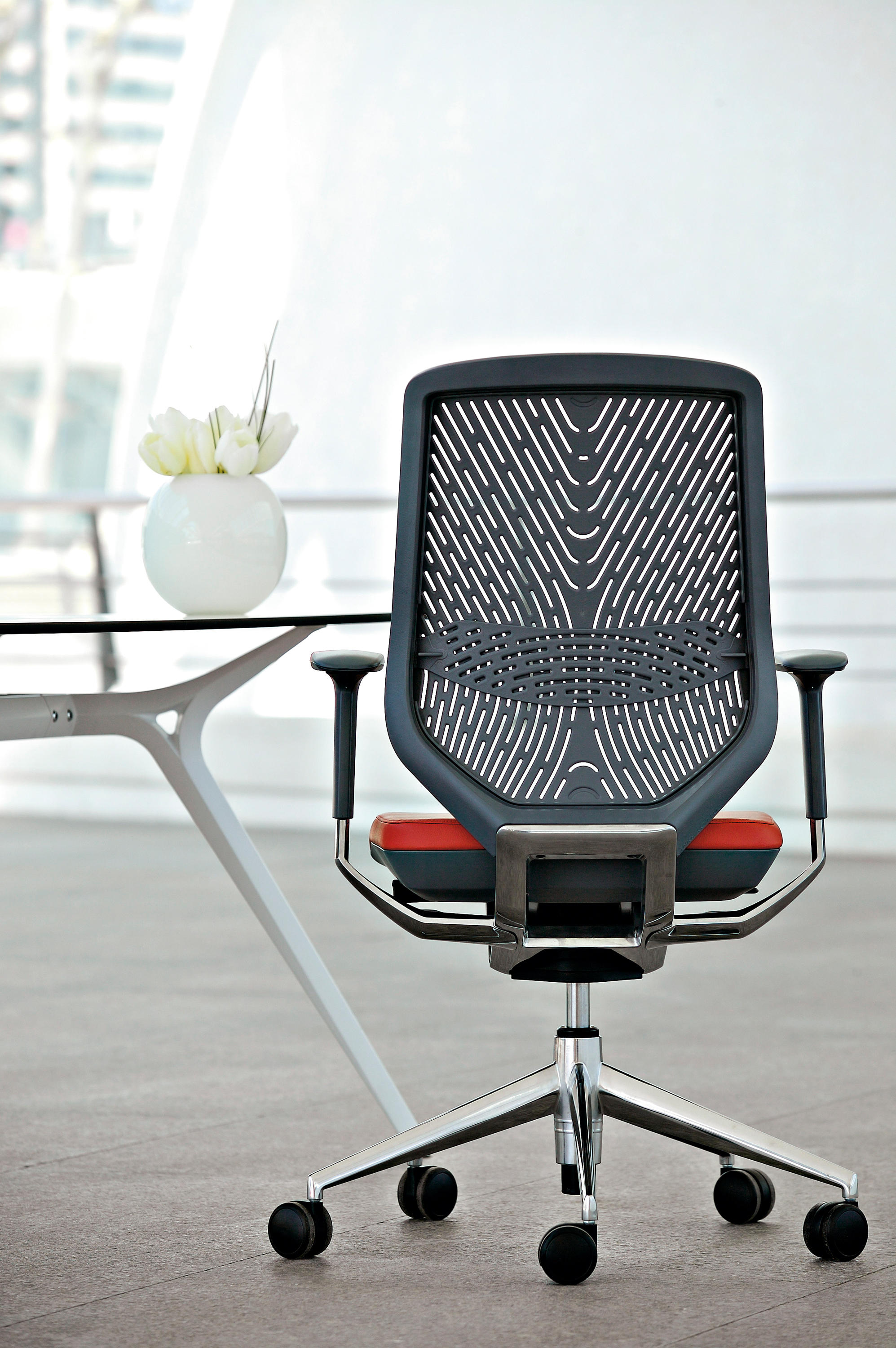 采用最新的智能靠背系统,完美的设计了在办公椅设计前沿Tnk Flex系列。自动旋转的枢轴可以将旋转过的椅子恢复到他默认的方位,而不需要用户手动激活任何装置.