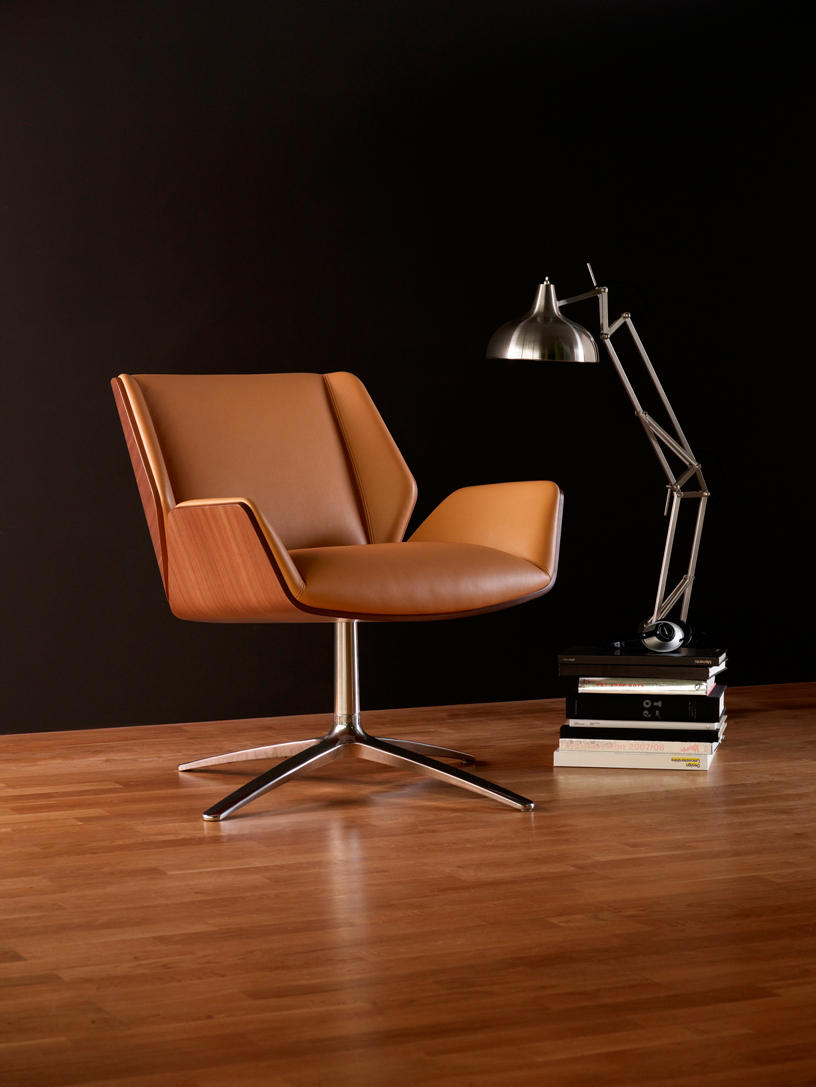 古典与现代的融合,诠释了Kruze(克鲁兹)躺椅背后的哲学。一种拥有醒目视觉效果和坐姿体验的智能设计结合了最精湛的工艺。高塑形的背部和轻柔弯曲的轮廓保证了坐姿的舒适性,而它别具一格的外形让它适应于任何行政大厅,接待室或会议区域。