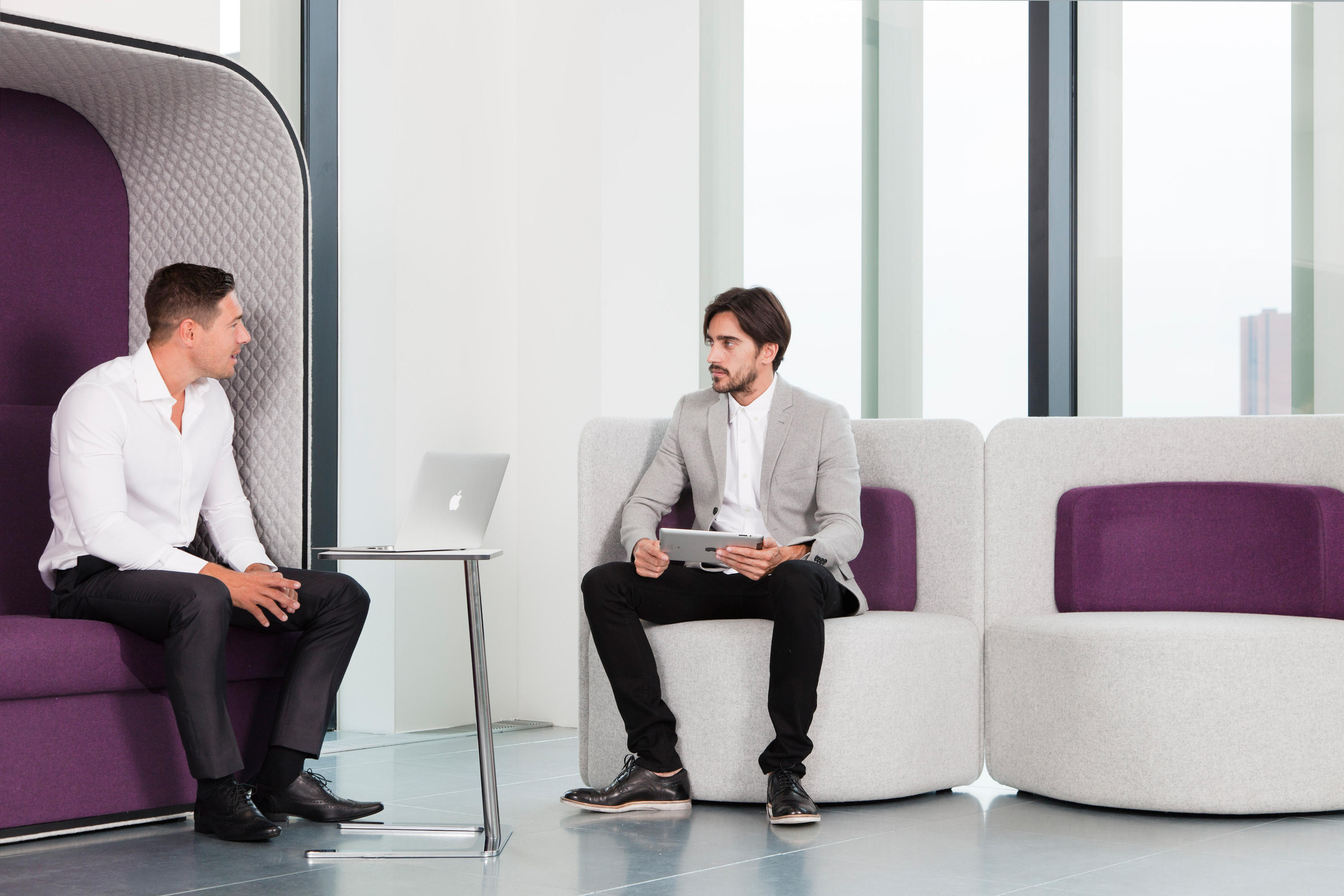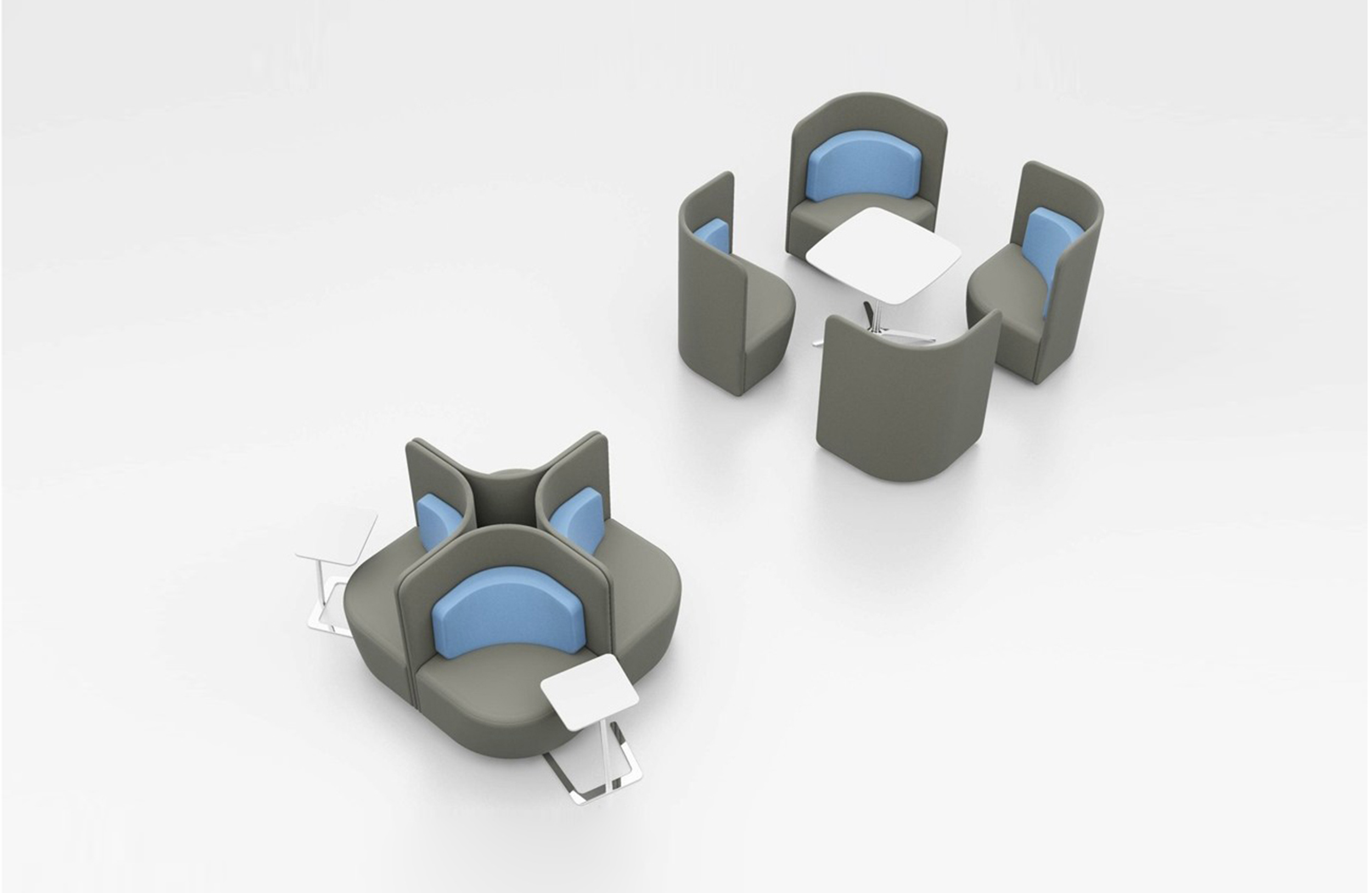 作为一种有高、低背两种款式可供选择的椅子,这种设计可以提高声学特性,并吸收周围背景噪音。
