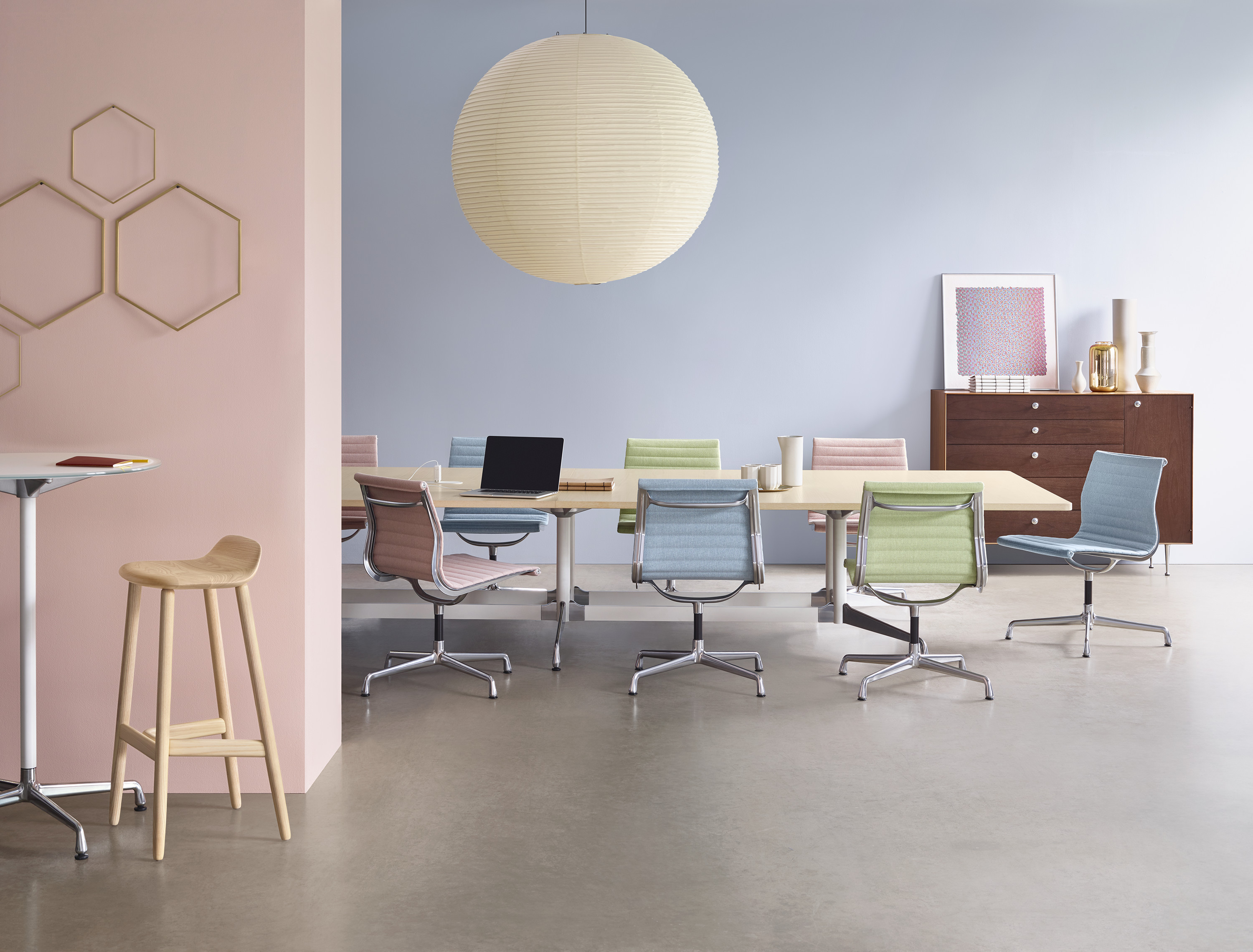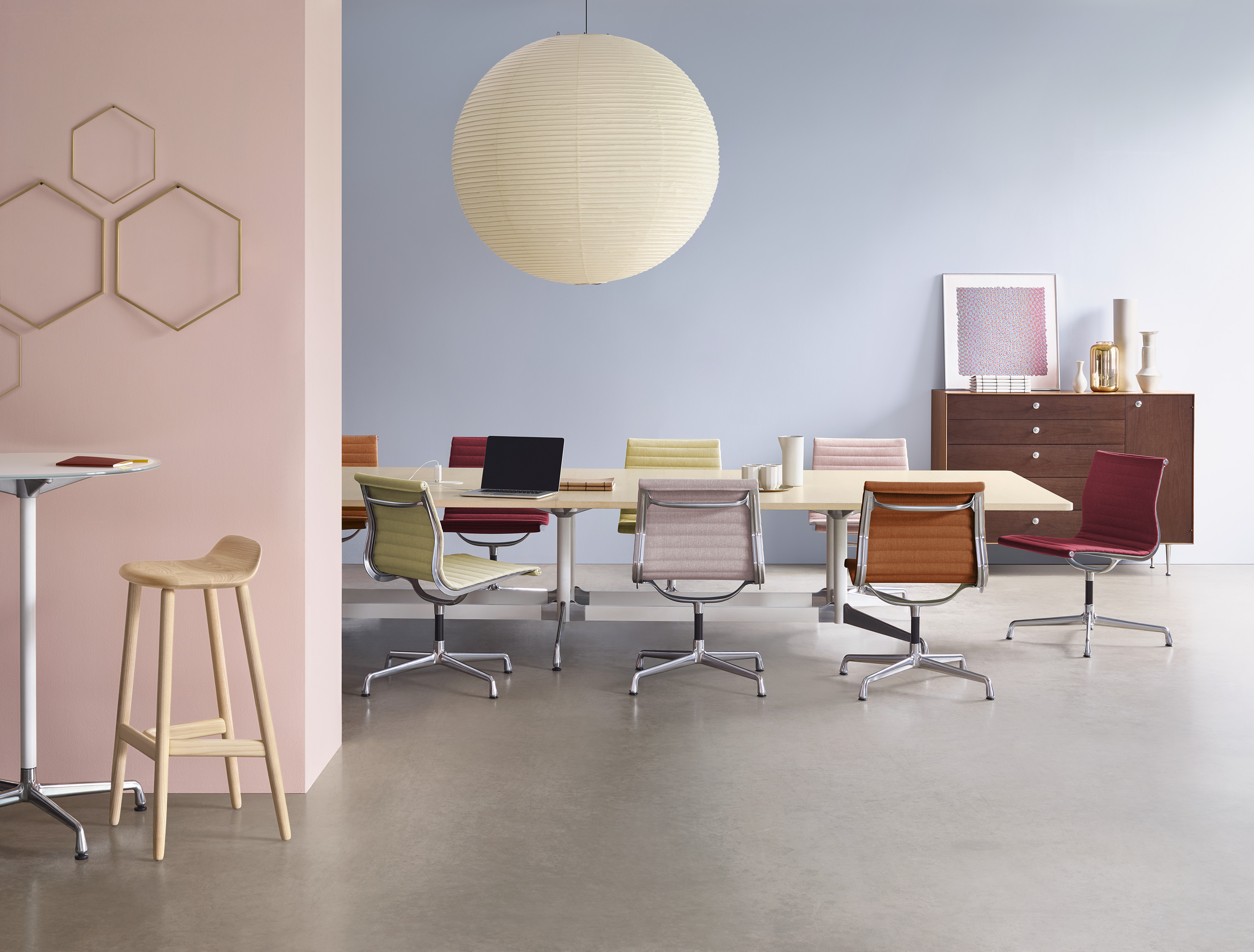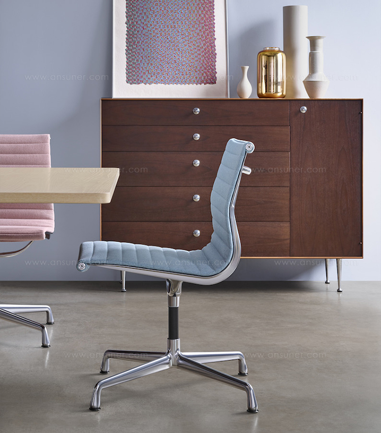 Charles与RayEames夫妇是20世纪最有影响力的设计师,卓越的设计涵盖了家具、建筑、影像与平面设计。他们从二次世界大战中美国海军的实验计画中学习经验并发展可谓是现今工业中使用模铸胶合版的先锋,这对设计界的超级夫妇档自1940年参与了由MOMA举办的有机家具设计大赛,自今已有近百件他们的作品被各大博物馆所永久典藏。 Eames® Soft Pad Side Chair(伊姆斯软包会议椅)是夫妻俩1958年设计的,是在全铝系列的基础上发展的另一系列Eames产品。舒适系列在全铝的椅架上增加了皮革制的柔软坐垫和靠背,高级铝合金制作,压模四星脚,可旋转。背垫和坐垫,采用西皮,具有透气性强,内部填充高密度定型绵,不易变形,不老化,依人体坐姿,符合人体工学,耐水及对人体无害等优势。椅子扶手选用优质电镀铝合金扶手,手感舒适,永久不生锈。转椅底盘为多功能底盘,可以保护使用者长时间坐用腿部健康,且作为高度可多定位调节。气压棒采用的气杆是正规厂家出产的外贸气杆,每一根气杆都有钢印,经过严格SGS检测的才可出厂,旋转、升降自如基本无声响,使用寿命长,可承受250kg,可升降数万次,将椅面调至与膝盖同高时,使用者坐下后双脚跟可垂直平放于地上,且大腿与地面平行,最符合人体工学理论,使用者长期久坐,也不想疲惫。办公椅脚为铝合金材质永久不生锈、承受能力强,安全更放心。椅子脚轮采用优质电镀片脚轮,耐用而美观,可以随意变换位置,贴心更方便,具有防震及防松脱,让椅子的安全性能更加可靠。