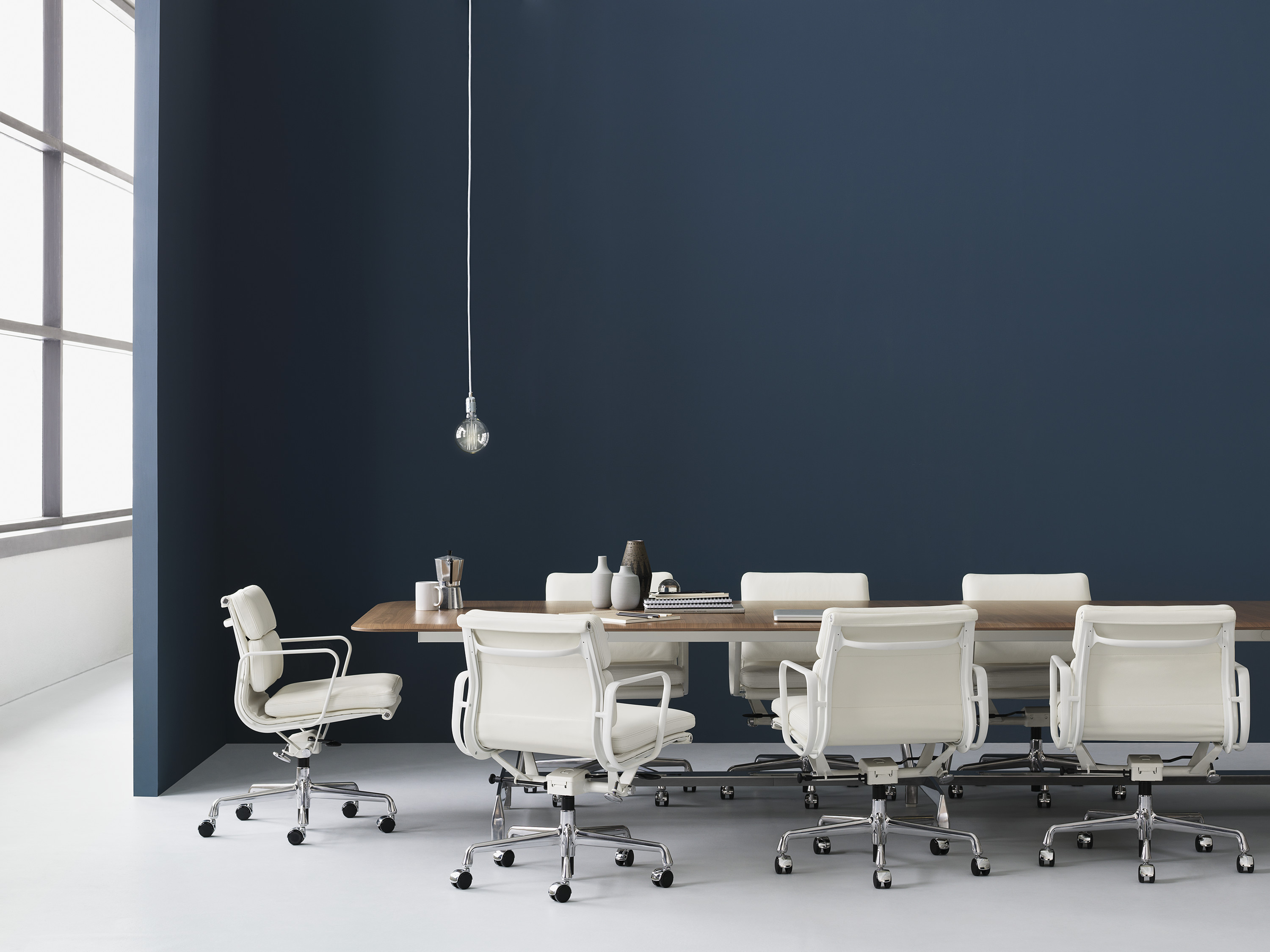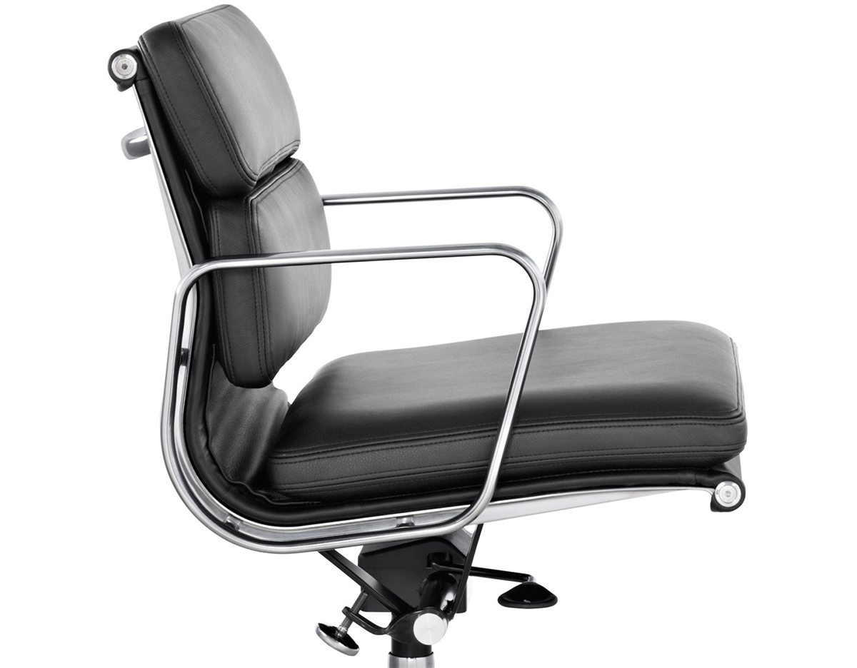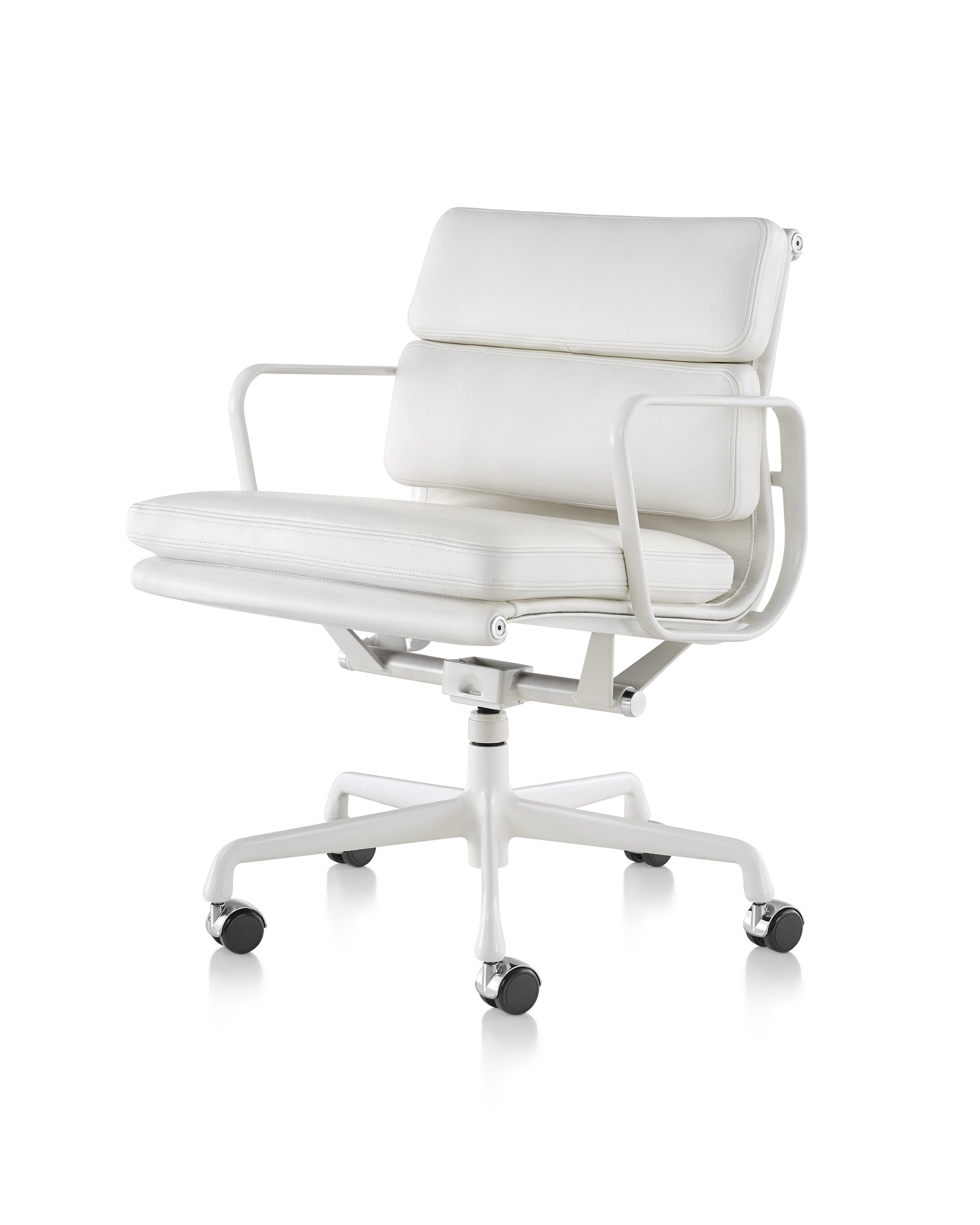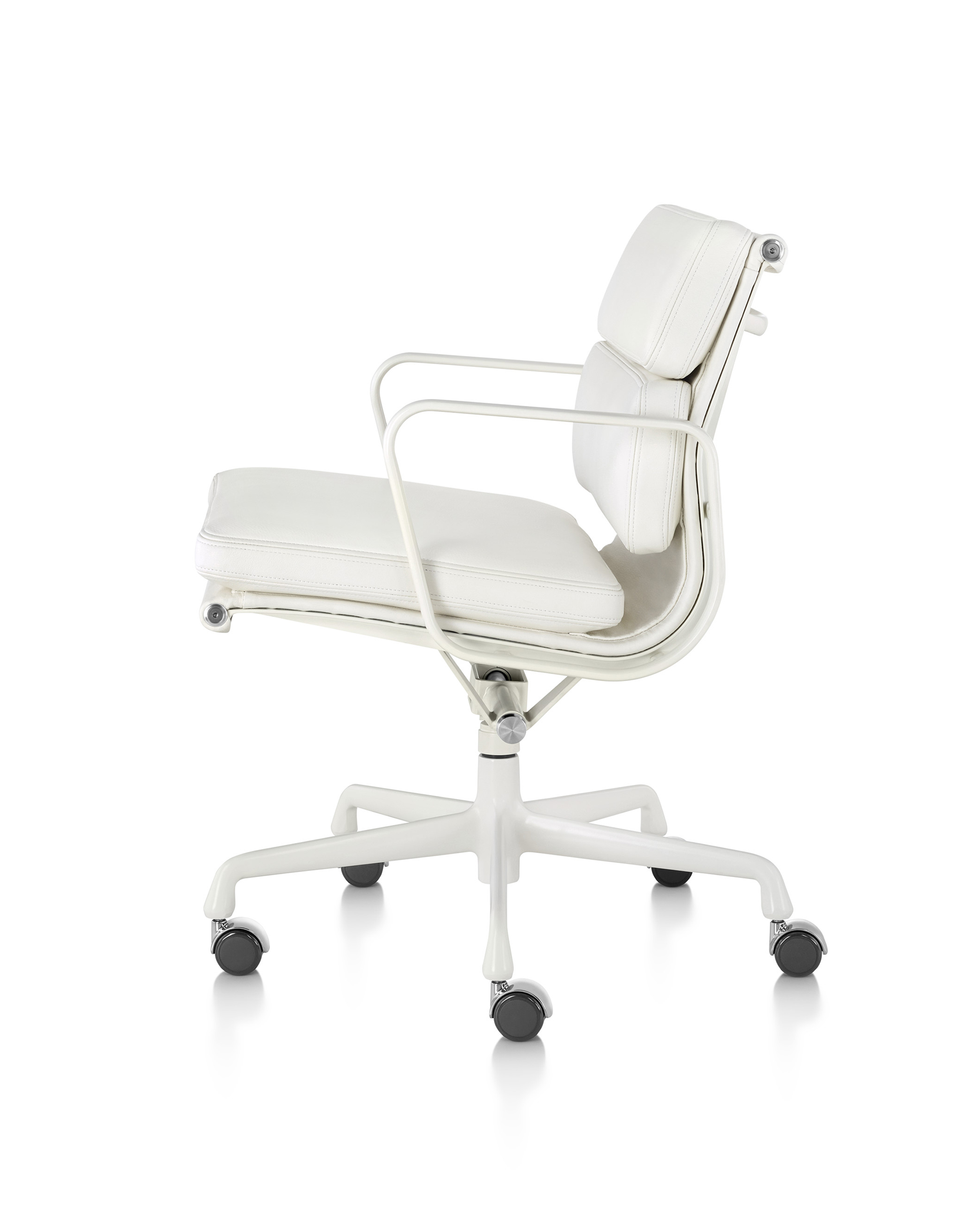 Charles与RayEames夫妇是20世纪最有影响力的设计师,卓越的设计涵盖了家具、建筑、影像与平面设计。他们从二次世界大战中美国海军的实验计画中学习经验并发展可谓是现今工业中使用模铸胶合版的先锋,这对设计界的超级夫妇档自1940年参与了由MOMA举办的有机家具设计大赛,自今已有近百件他们的作品被各大博物馆所永久典藏。 Eames® Soft Pad Side Chair(伊姆斯软包会议椅)是夫妻俩1958年设计的,是在全铝系列的基础上发展的另一系列Eames产品。舒适系列在全铝的椅架上增加了皮革制的柔软坐垫和靠背,高级铝合金制作,压模四星脚,可旋转。背垫和坐垫,采用西皮,具有透气性强,内部填充高密度定型绵,不易变形,不老化,依人体坐姿,符合人体工学,耐水及对人体无害等优势。椅子扶手选用优质电镀铝合金扶手,手感舒适,永久不生锈。转椅底盘为多功能底盘,可以保护使用者长时间坐用腿部健康,且作为高度可多定位调节。气压棒采用的气杆是正规厂家出产的外贸气杆,每一根气杆都有钢印,经过严格SGS检测的才可出厂,旋转、升降自如基本无声响,使用寿命长,可承受250kg,可升降数万次,将椅面调至与膝盖同高时,使用者坐下后双脚跟可垂直平放于地上,且大腿与地面平行,最符合人体工学理论,使用者长期久坐,也不想疲惫。办公椅脚为铝合金材质永久不生锈、承受能力强,安全更放心。椅子脚轮采用优质电镀片脚轮,耐用而美观,可以随意变换位置,贴心更方便,具有防震及防松脱,让椅子的安全性能更加可靠。