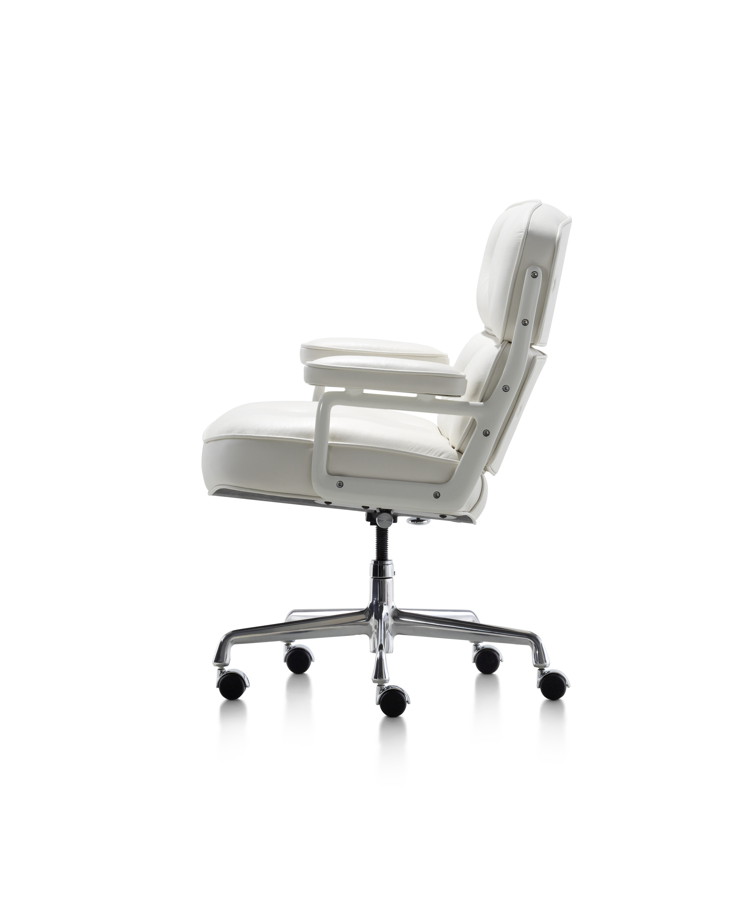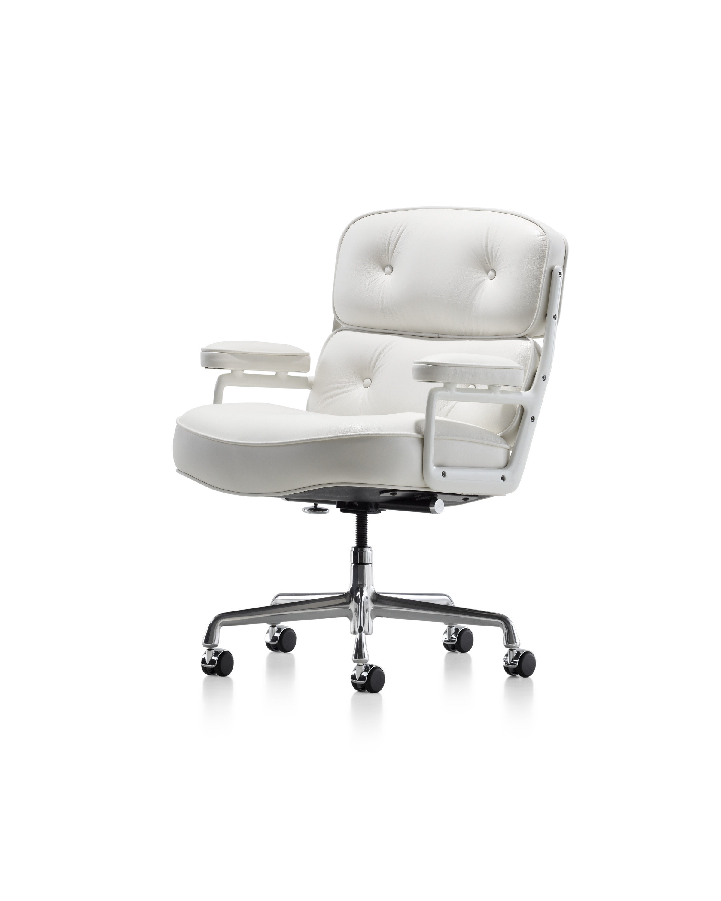 Charles与RayEames夫妇是20世纪最有影响力的设计师,卓越的设计涵盖了家具、建筑、影像与平面设计。他们从二次世界大战中美国海军的实验计画中学习经验并发展可谓是现今工业中使用模铸胶合版的先锋,这对设计界的超级夫妇档自1940年参与了由MOMA举办的有机家具设计大赛,自今已有近百件他们的作品被各大博物馆所永久典藏。 Eames® Soft Pad Side Chair(伊姆斯软包会议椅)是夫妻俩1958年设计的,是在全铝系列的基础上发展的另一系列Eames产品。舒适系列在全铝的椅架上增加了皮革制的柔软坐垫和靠背,高级铝合金制作,压模四星脚,可旋转。背垫和坐垫,采用西皮,具有透气性强,内部填充高密度定型绵,不易变形,不老化,依人体坐姿,符合人体工学,耐水及对人体无害等优势。椅子扶手选用优质电镀铝合金扶手,手感舒适,永久不生锈。转椅底盘为多功能底盘,可以保护使用者长时间坐用腿部健康,且作为高度可多定位调节。气压棒采用的气杆是正规厂家出产的外贸气杆,每一根气杆都有钢印,经过严格SGS检测的才可出厂,旋转、升降自如基本无声响,使用寿命长,可承受250kg,可升降数万次,将椅面调至与膝盖同高时,使用者坐下后双脚跟可垂直平放于地上,且大腿与地面平行,最符合人体工学理论,使用者长期久坐,也不想疲惫。办公椅脚为铝合金材质永久不生锈、承受能力强,安全更放心。椅子脚轮采用优质电镀片脚轮,耐用而美观,可以随意变换位置,贴心更方便,具有防震及防松脱,让椅子的安全性能更加可靠。