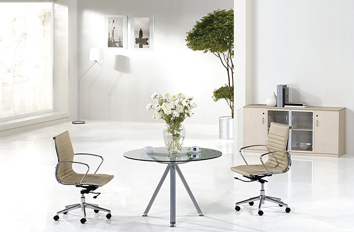 ※ 玻璃洽谈台的使用场景图,洽谈椅推荐,临时文件柜推荐!