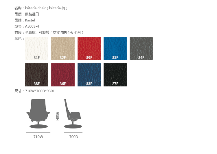 Kastel是一个在室内装饰领域极具影响力的公司,该公司具备高水平的综合生产能力,是一个充满活力的公司。Kastel公司产品多种多样,包括办公座椅,社区座椅和家庭座椅等等。Kastel在对人体工程学进行深刻研究之后,制定了现在的生产线,产品的设计以舒适为主,在生产过程中每一步都严格遵循这一宗旨,为客户提供高性能的产品,满足客户对舒适的基本要求。这也是Kastel公司的经营理念。kimera系列办公椅采用全真皮扪面、可同步升降、旋转、可倾仰锁定,符合人体工学,高档舒适,是办公,会议的理想选择。