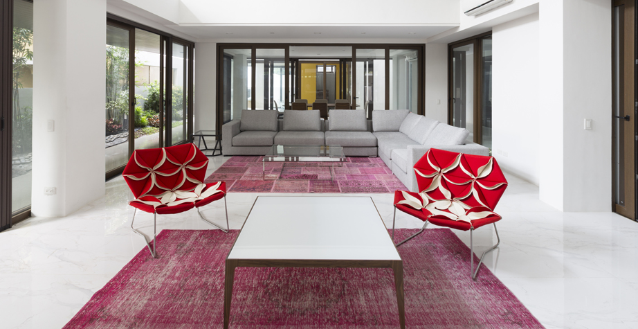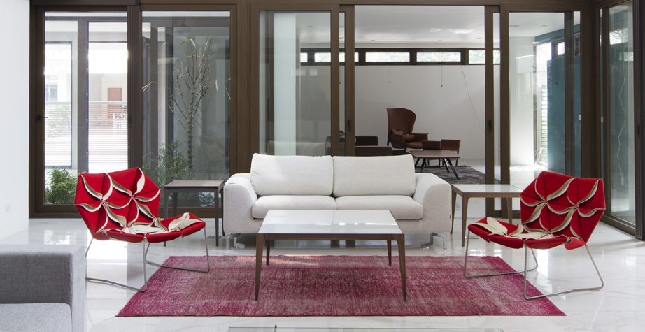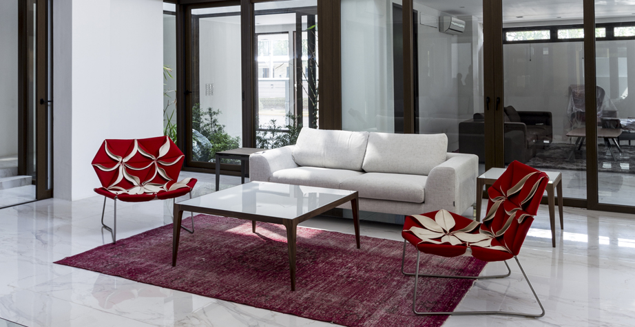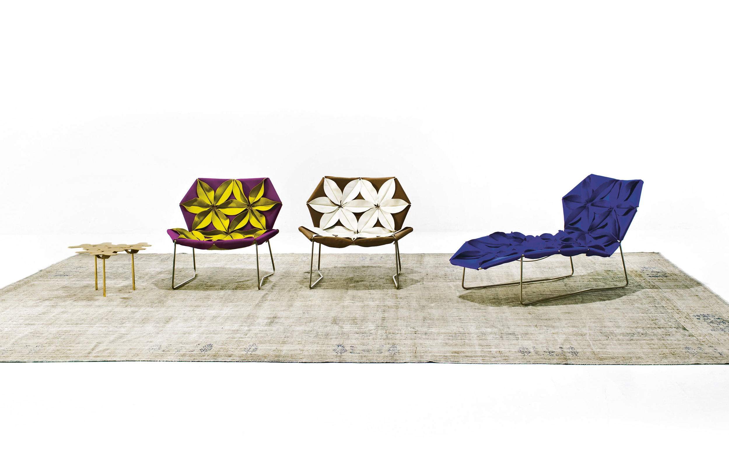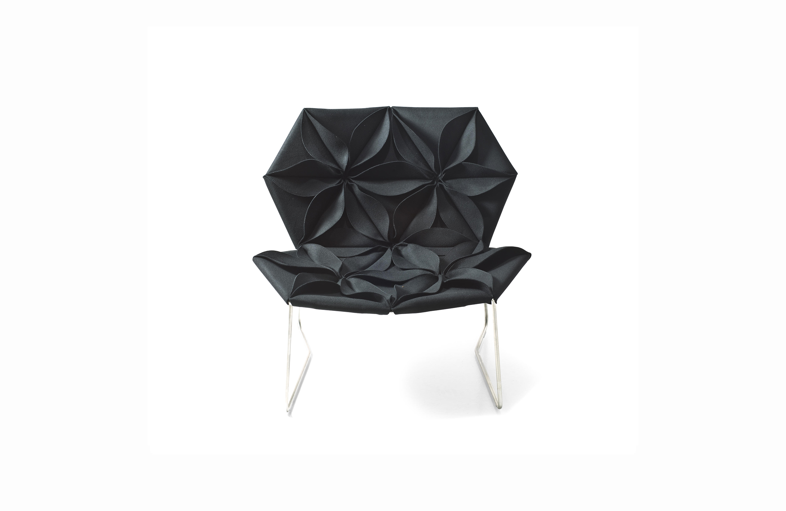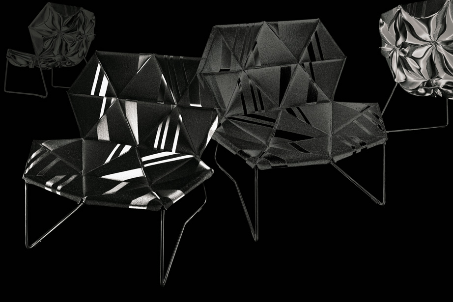 座椅上花瓣綻放的效果,傳達著兩種截然不同的情緒。花瓣向上伸展賦予了一種獨特而女性化的蓬勃的生氣;而向下的花瓣則顯得格外嚴肅認真。