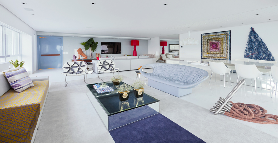 這是一件具有很高裁剪技術的作品,透過活潑的色彩和革新的材料,結合了時尚與設計。雙面可以用黑色和白色,或一個自然的色調搭配出如萬花筒般的錯落有致,極具表現張力的椅子。