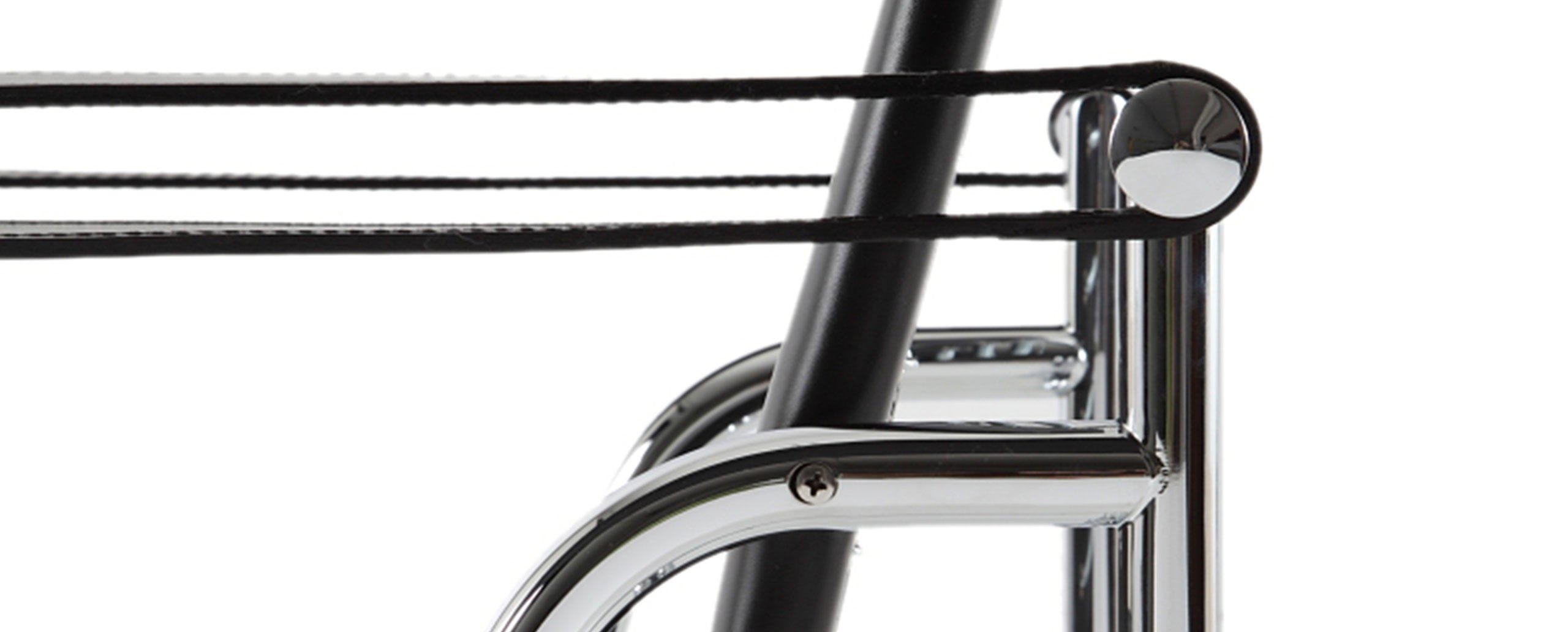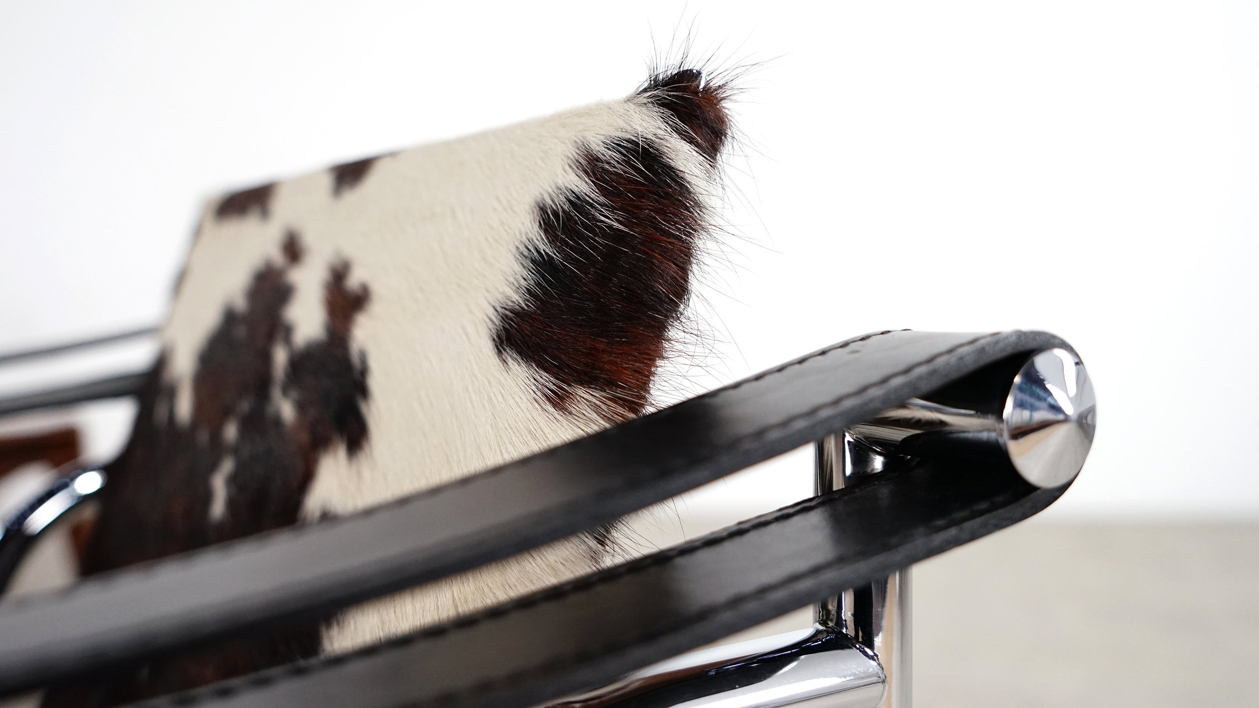 1928年诞生的LC1一款扶手椅Ville-d’Avray,采用环保的CR3三价镀铬钢结构。由建筑设计师设计,采用聚氨酯软垫座面和靠背,可提供更好的舒适性。扶手椅前面较宽,向后逐渐收窄。蓝缎饰面;扶手前端带有灰色皮革镶边。这款扶手椅是1928年专为Villa Church à Ville-d’Avray设计的,坐垫和靠背的填充满足客户的最舒适要求。1928年还为收藏家Raoul La Roche的艺术馆创造了一款类似的填充模型。这些原型用于更精确地定义1929秋季沙龙模型的结构。