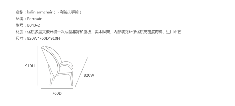 Kalin Armchair(卡利纳扶手椅)是著名设计师Jean Marc Gady的经典作品。卡利纳扶手椅有如张开的贝壳,盛开的花瓣,像光滑的鸟巢保护着您,让你安心的休憩、阅读。制作才有优质多层夹板开模一次成型靠背和座板、实木脚架、内部填充环保优质高密度海绵、进口布艺,舒适的坐垫和高达17种颜色可以供您选择。