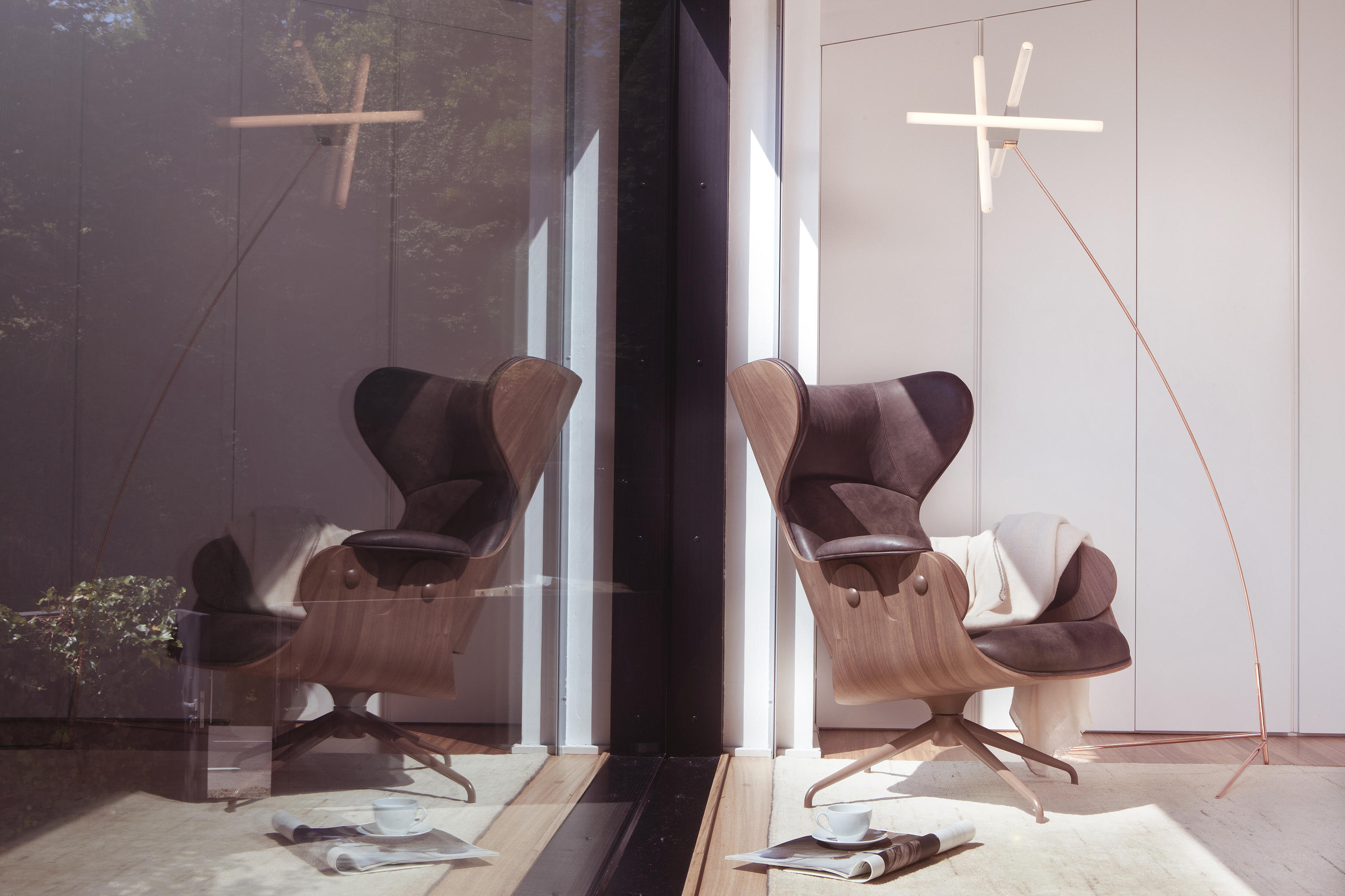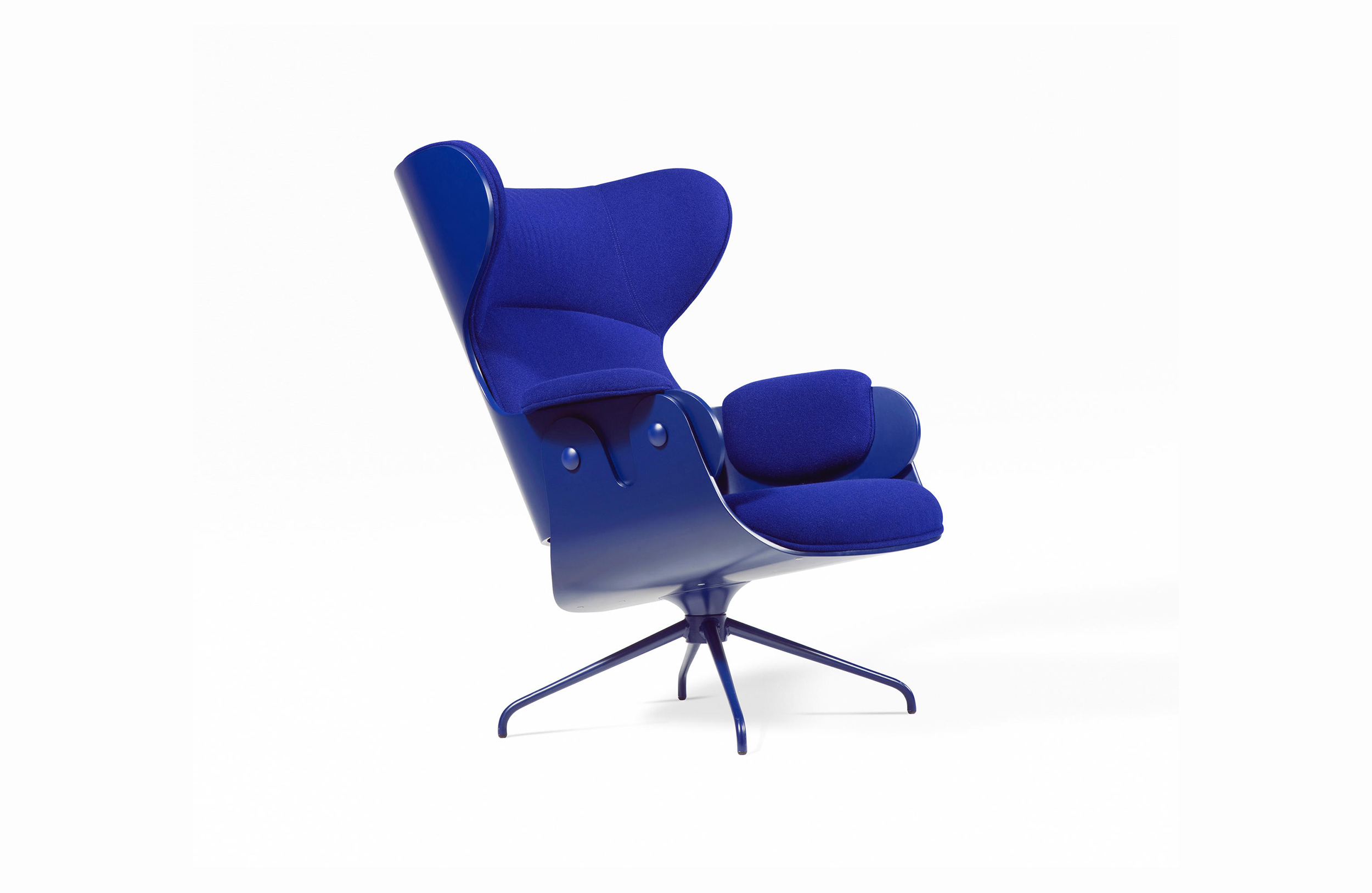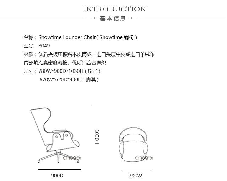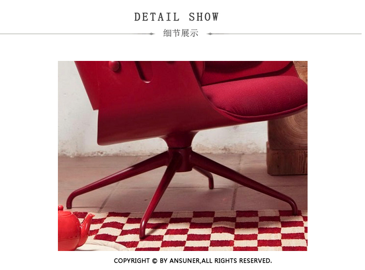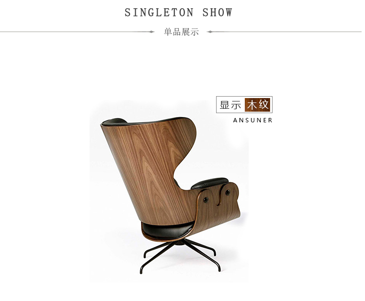西班牙设计顽童 Jaime Hayon 2010 年在米兰家具展上再次吸引所有人的目光,Jaine Hayon 与西班牙家具厂牌 BD Barcelona Design 合作的 Showtime 系列家具自推出后俨然成为Jaime Hayon 个人的经典代表作,在 2010 年加入了新成员 Showtime Lounger 休闲椅,当中似乎不难发现有着 Charles & Ray Eames Lounge Chair and Ottoman 的影子,重新诠释这张20世纪经典椅款 Hayon 对设计大师致敬的同时,也注入更多 Hayon 幽默诙谐的设计手法。 Showtime 系列家具主要使用的材质和构造包括:优质夹板压模贴木皮而成、进口头层牛皮或进口羊绒布、内部填充高密度海棉、优质铝合金脚架。