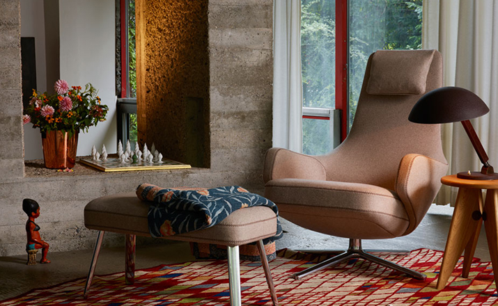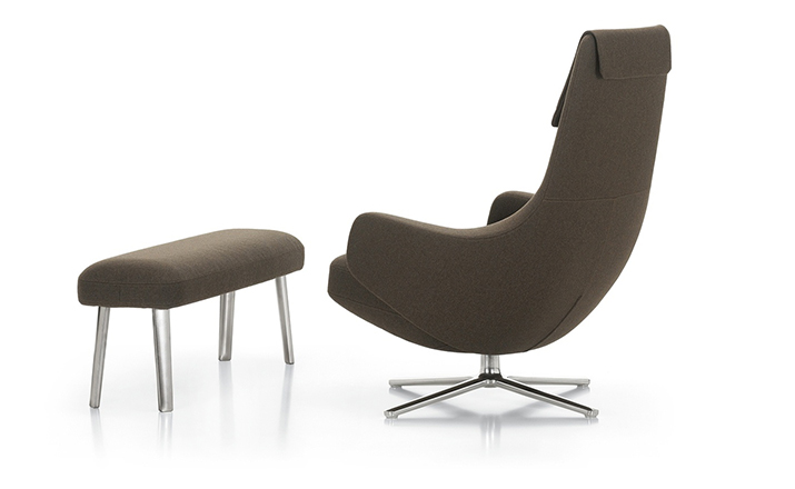 repos lounge chair and ottoman(repos休闲椅&脚踏)由设计大师Antonio Citterio所设计。repos系列休闲椅采用钢制铝合金脚架、聚氨酯海绵填充、高级布艺扪面,可随意调整坐姿和高度,也可以放平躺,配上舒适的羽毛衬垫,无论阅读或者休憩,都非常舒服,符合人体工学,高档舒适,是办公,会议的理想选择。意大利设计师和建筑师 Antonio Citterio赋予了这边椅子永恒的优雅气质与无与伦比的舒适,是当代设计的经典,无论用在办公、商业、家庭都是非常高贵大气的。